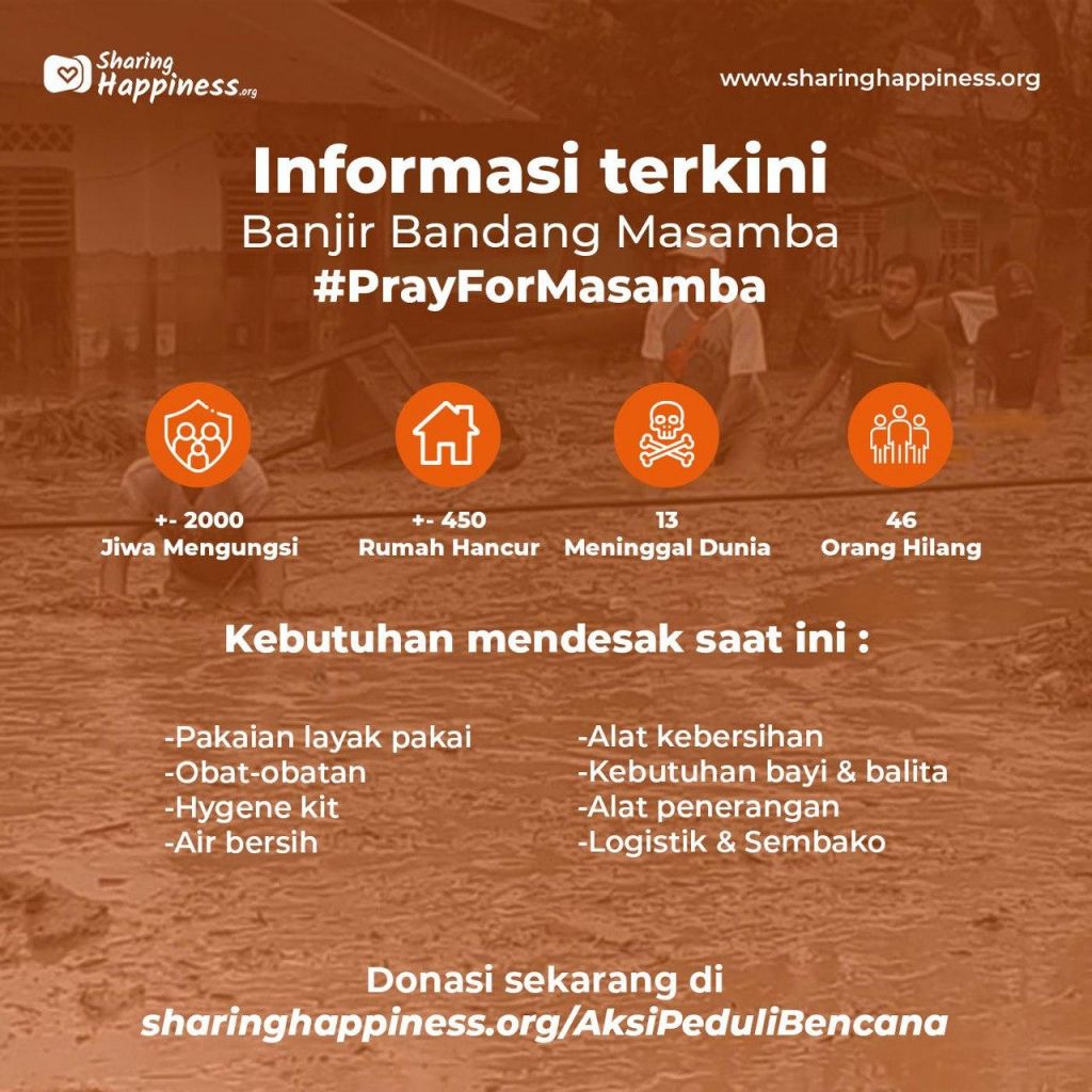 - Share campaign ini ke kerabat dan komunitasmu, supaya makin banyak yang bantu Masamba