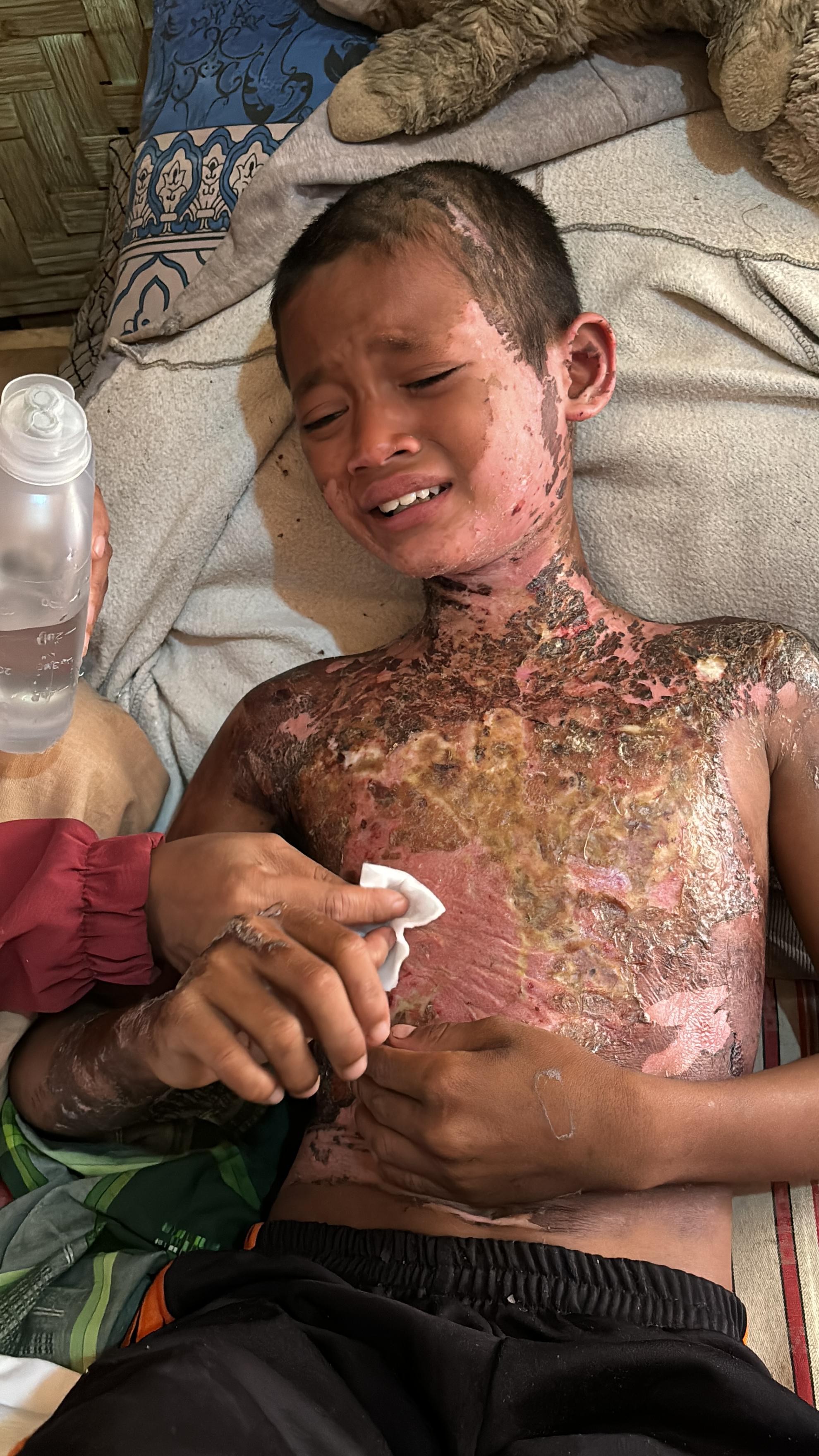 Setiap hari, Nana harus merasakan sakit dan panas. Hampir seluruh wajahnya terkena sengatan listrik. Bahkan kini, badan Nana penuh dengan nanah karena infeksi.