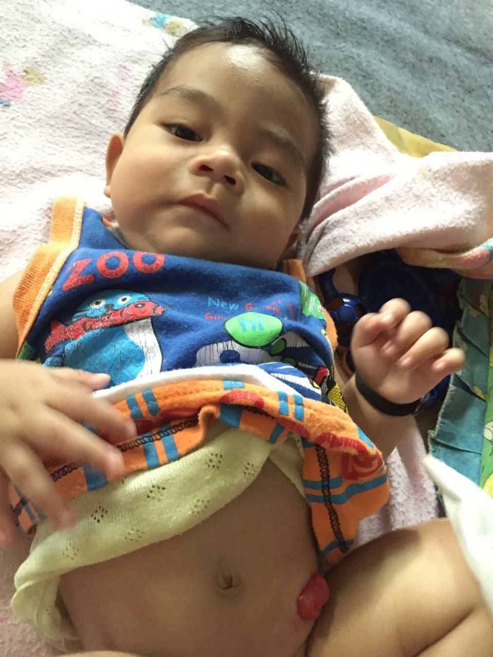 Usianya baru menginjak 6 bulan. Nizam terlahir tanpa anus, sampai akhirnya Nizam harus dioperasi untuk dibuatkan lubang kecil di perut.
