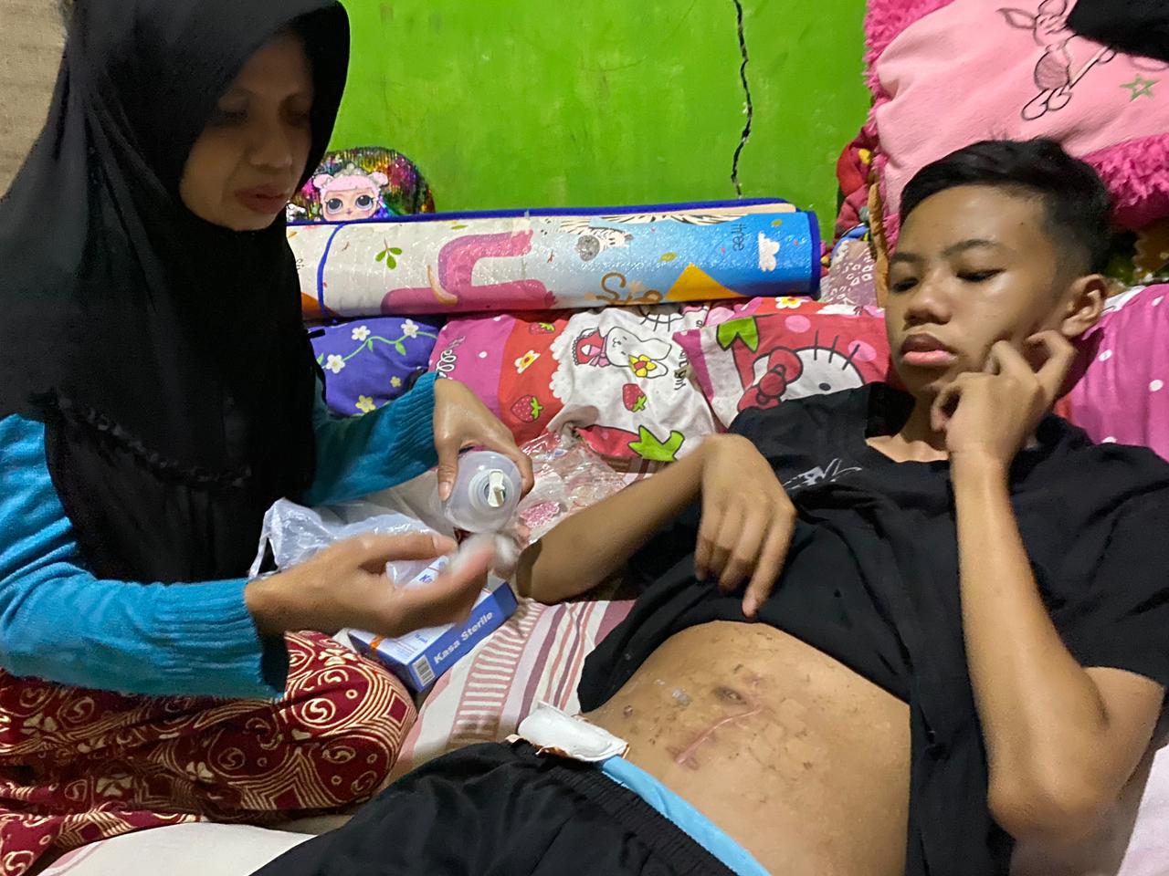 saya Sandi kondisinya seperti ini,saya takut kehilangan anak saya,sekarang setelah operasi pertama anak saya harus dihadapkan lagi untuk operasi kedua tanggal 10 Februari nanti," Ucap ibu Yati..