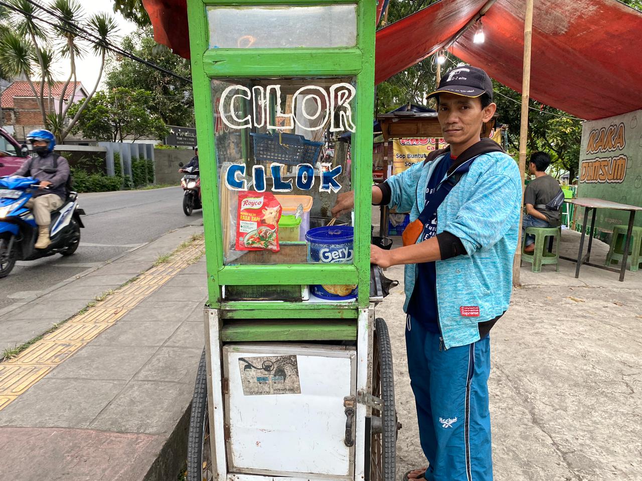 "Satu tusuk cilor dihargai 5000 rupiah,semenjak corona jualan saya sepi neng,saya paling bisa bawa uang ke rumah itu 20-30 ribu hanya cukup untuk sehari hari aja,belum sama jajan anak,belum kontrakan,terkadang kalau cilor saya sepi saya malah berhutang ke warung untuk modal besok,"-Pak Heri..