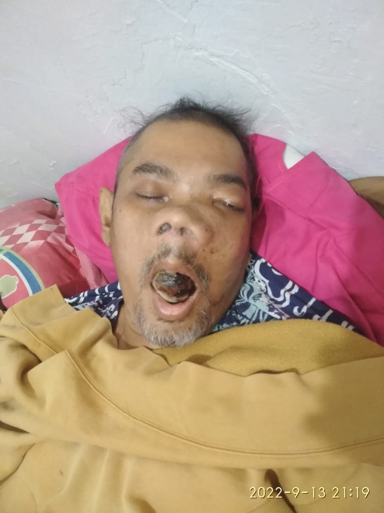 Kondisi Pak Yudi membaik setelah kemotrapi ke 1-4, obat merespon dengan baik. Namun kemotrapi ke 5 dan 6 obat tidak merespon sama sekali. Dalam proses menunggu CT Scan dan kemoterapi terjadi pertumbuhan tumor kembali sampai saat ini tumor Pak Yudi membesar keluar menembus langit langit mulut.