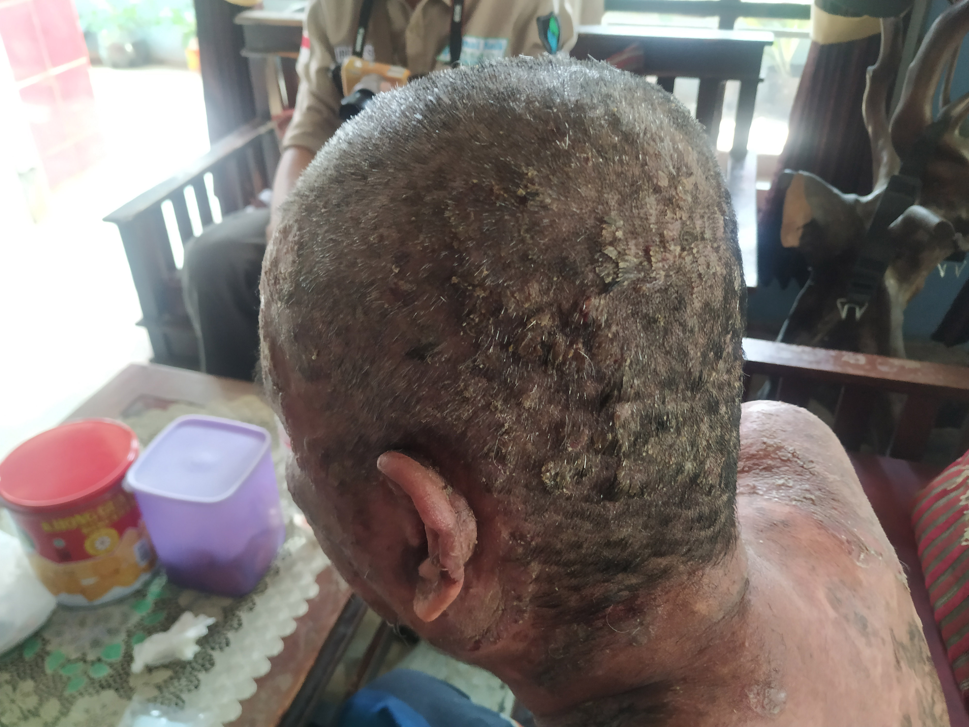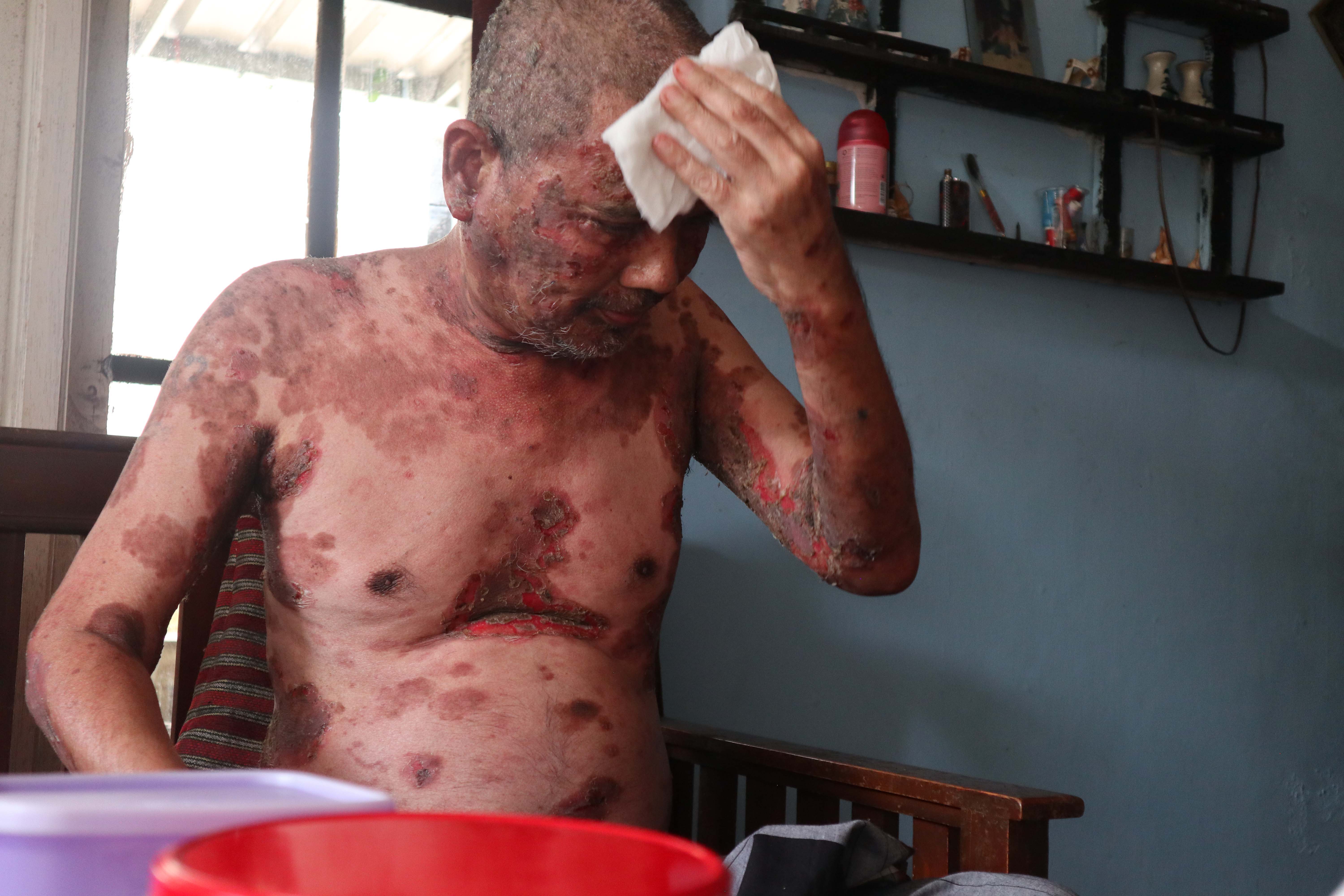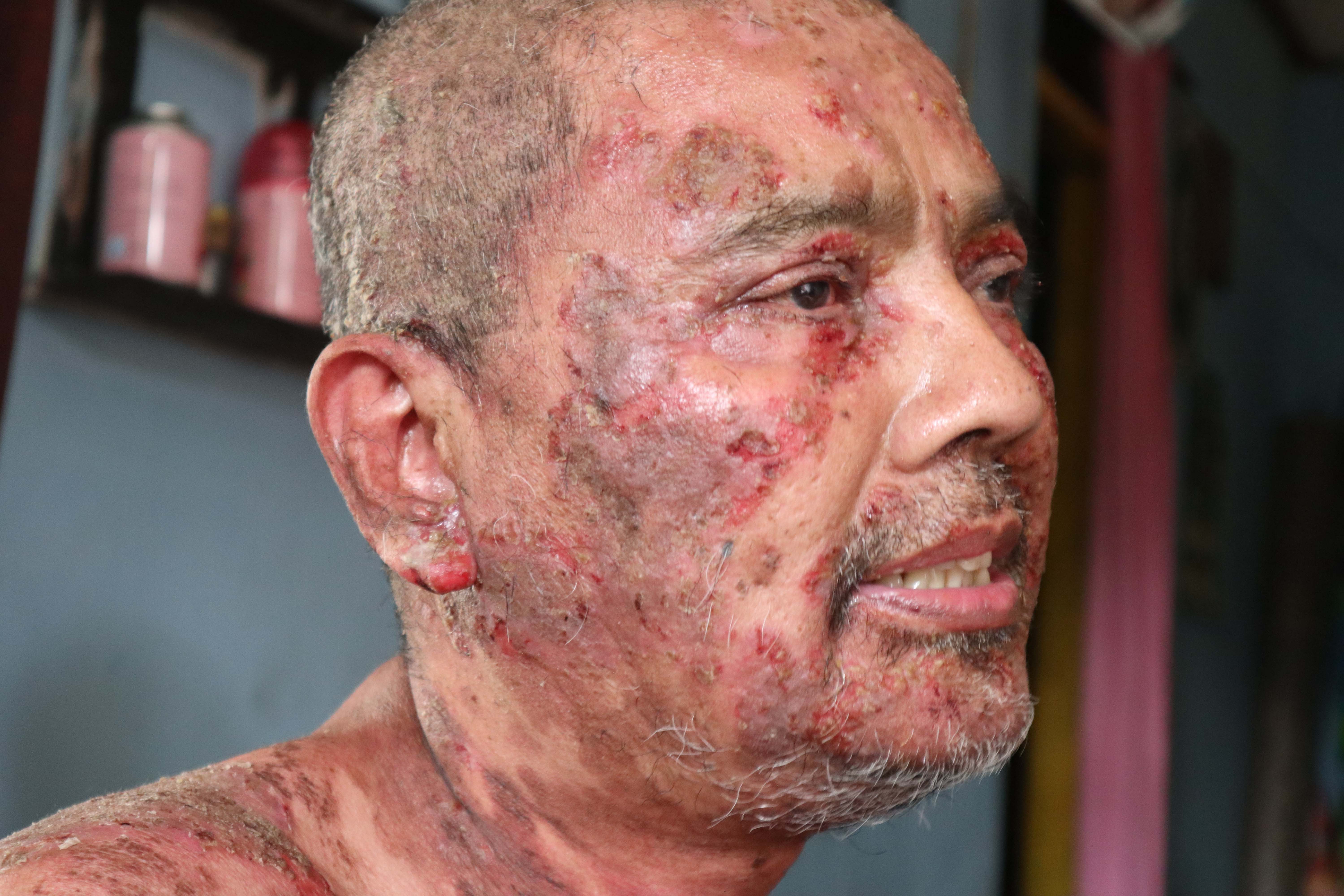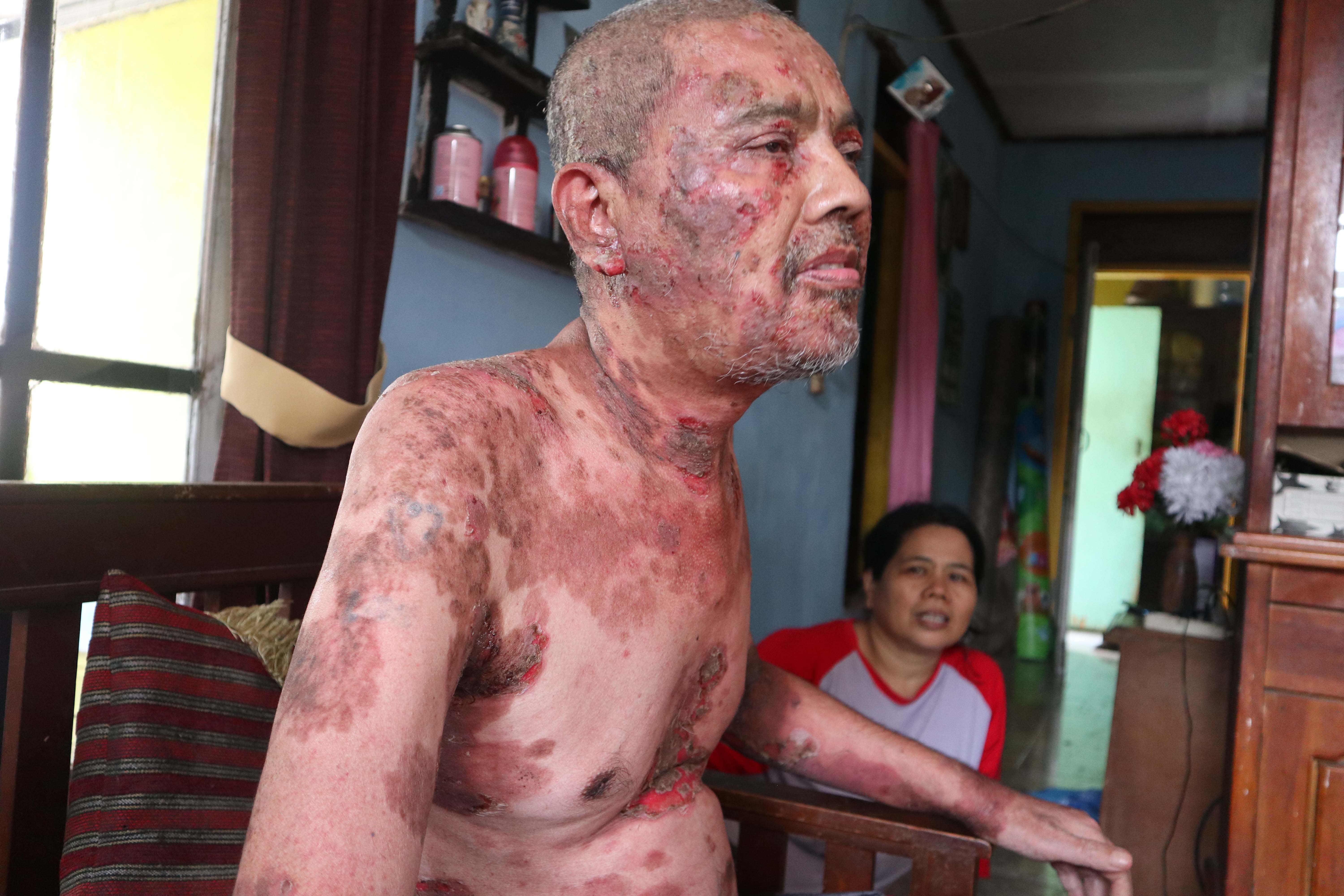 Seluruh badan melepuh, bahkan kulit pun ikut mengelupas.