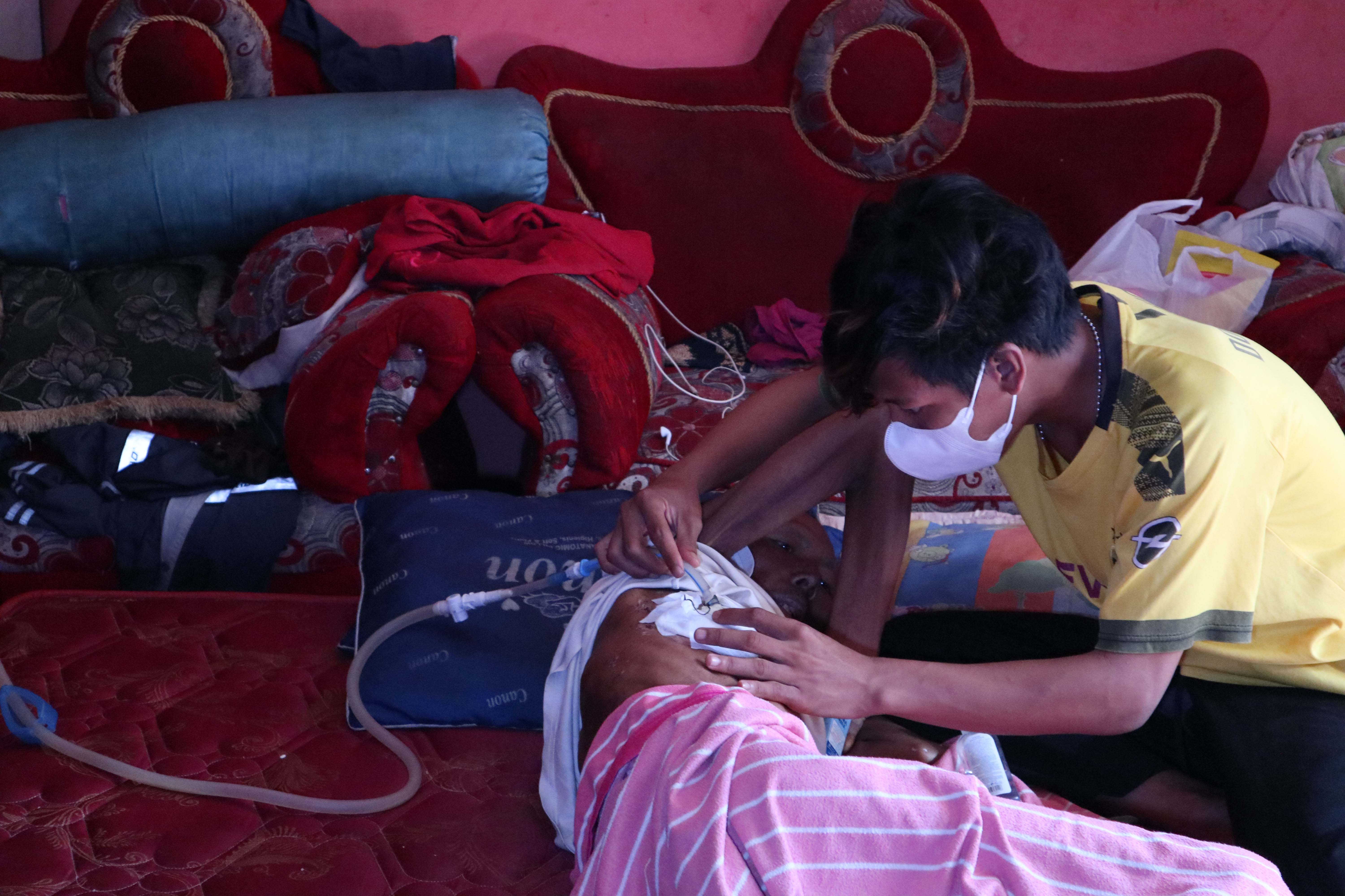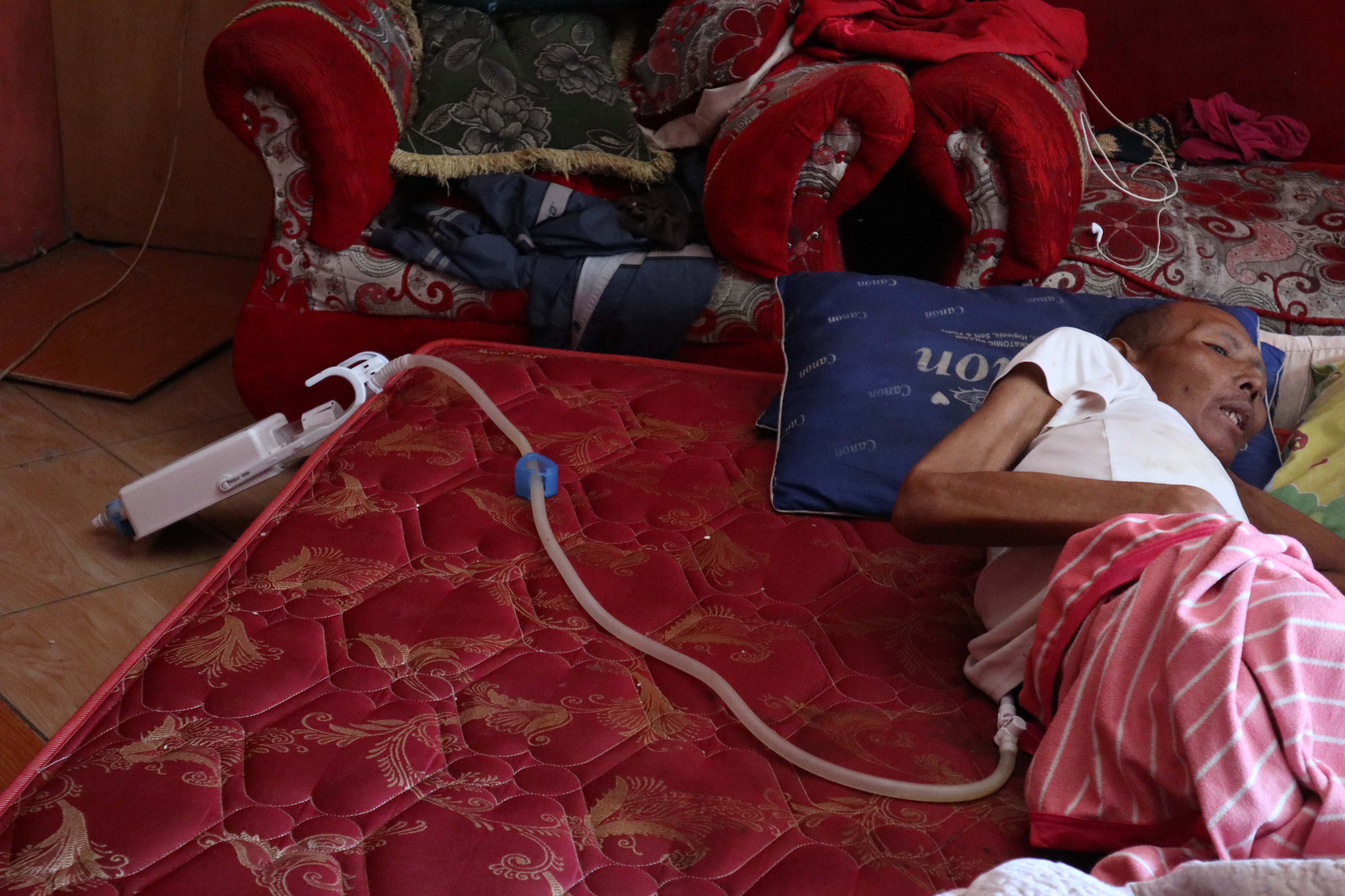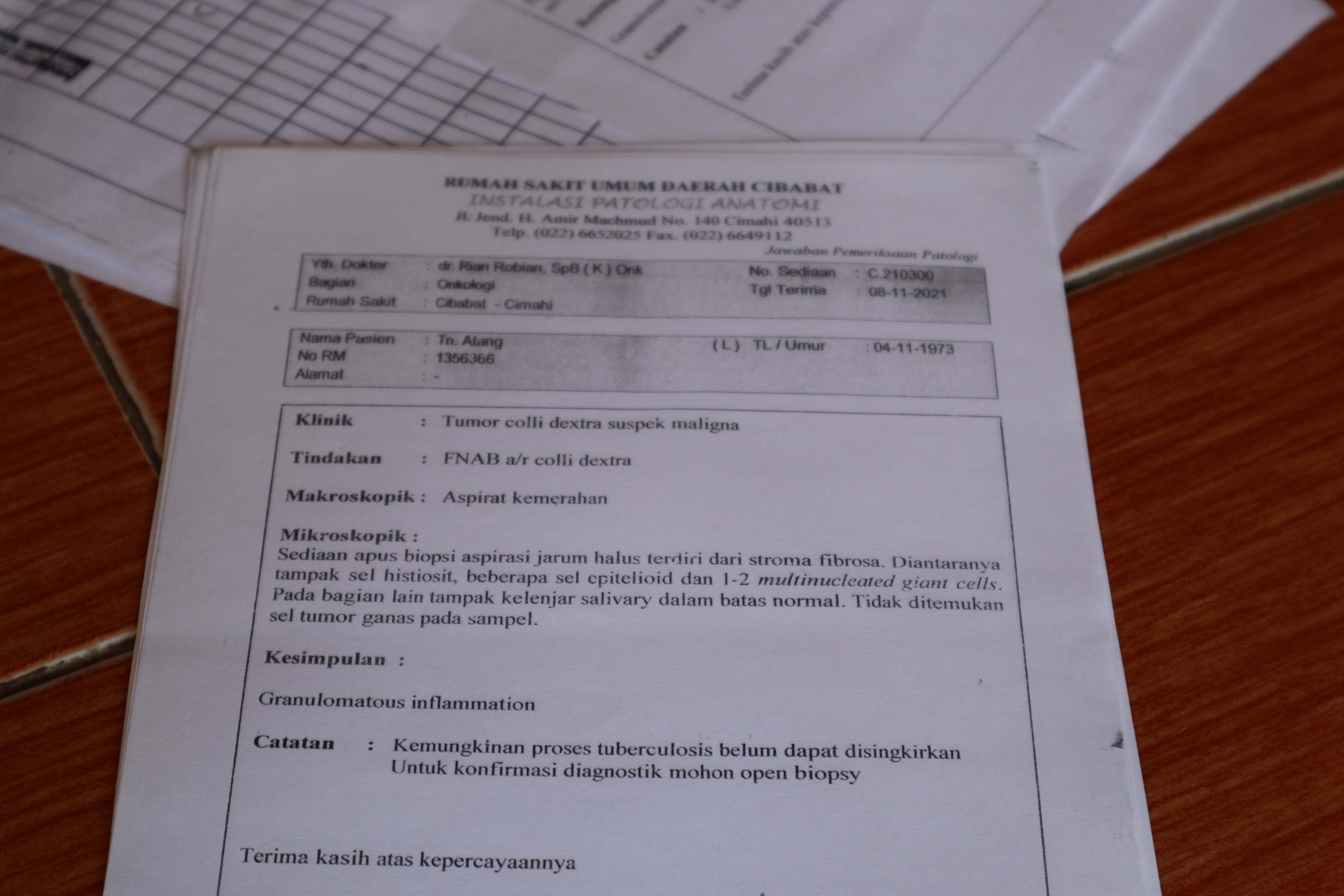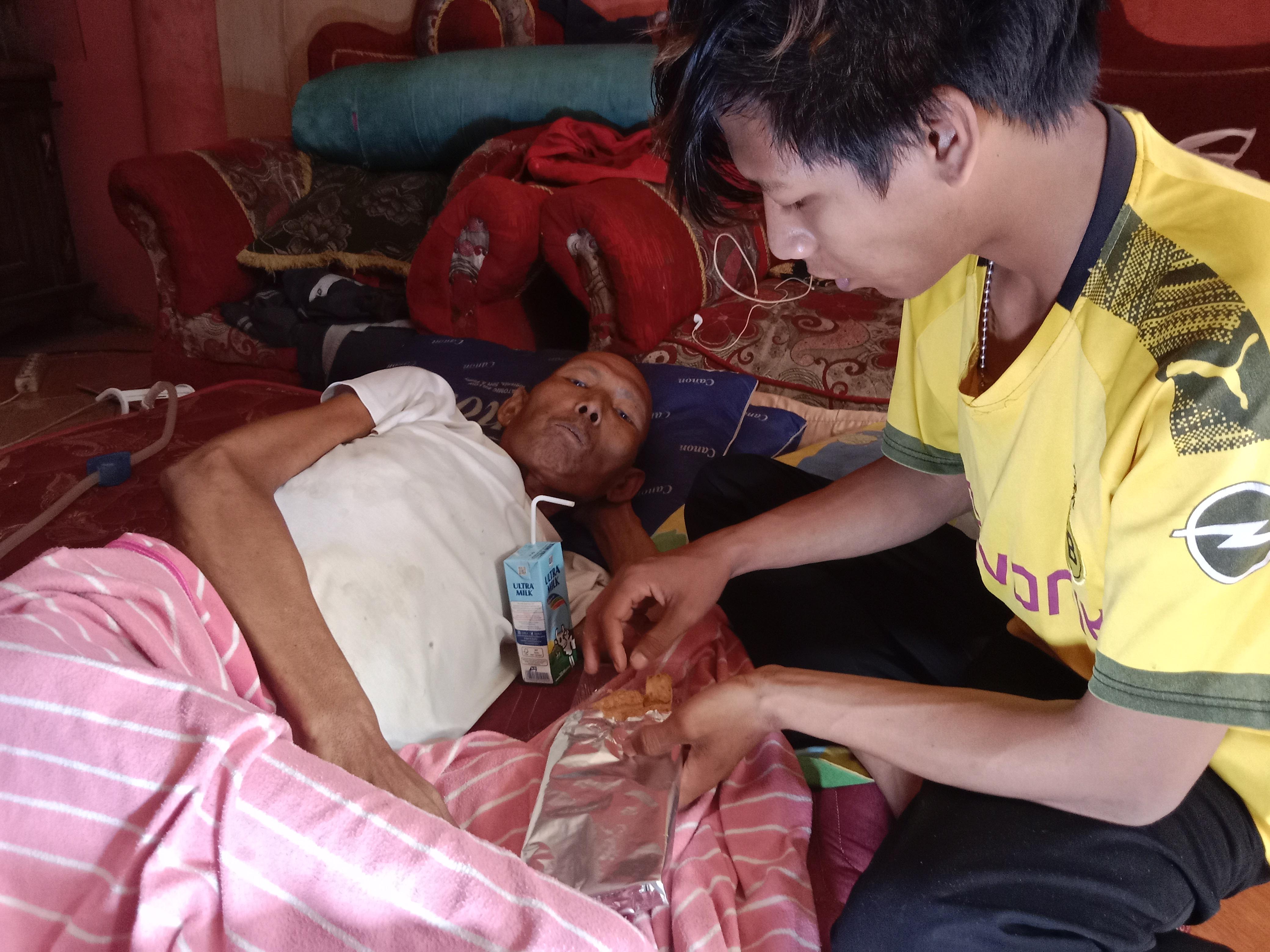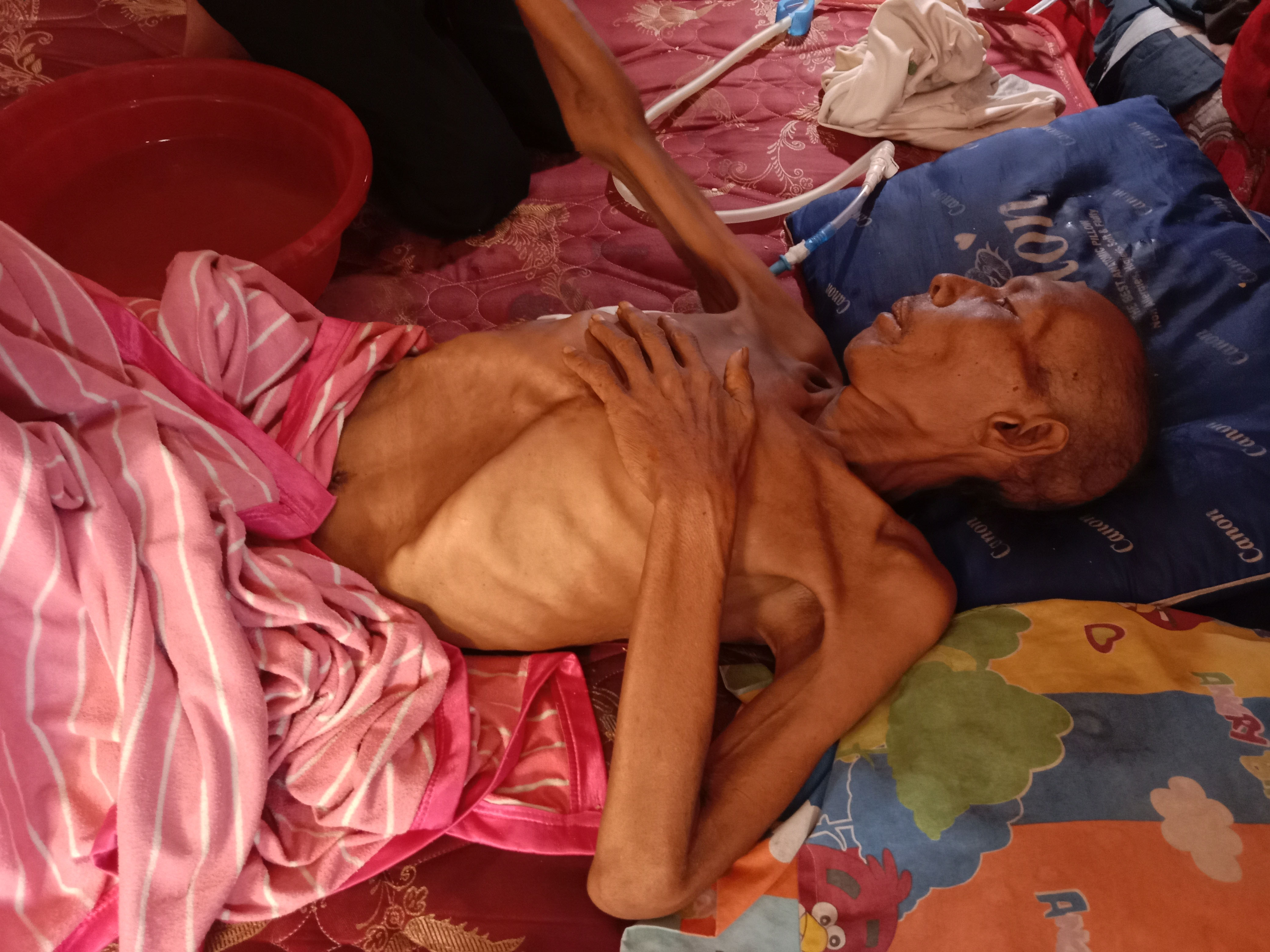 Pa Atang (49 tahun) dulu mempunyai badan yang tinggi dan kekar tapi sekarang cuman tinggal tulang berbalut kulit, setiap malam beliau kesakitan hingga tak bisa tidur.*