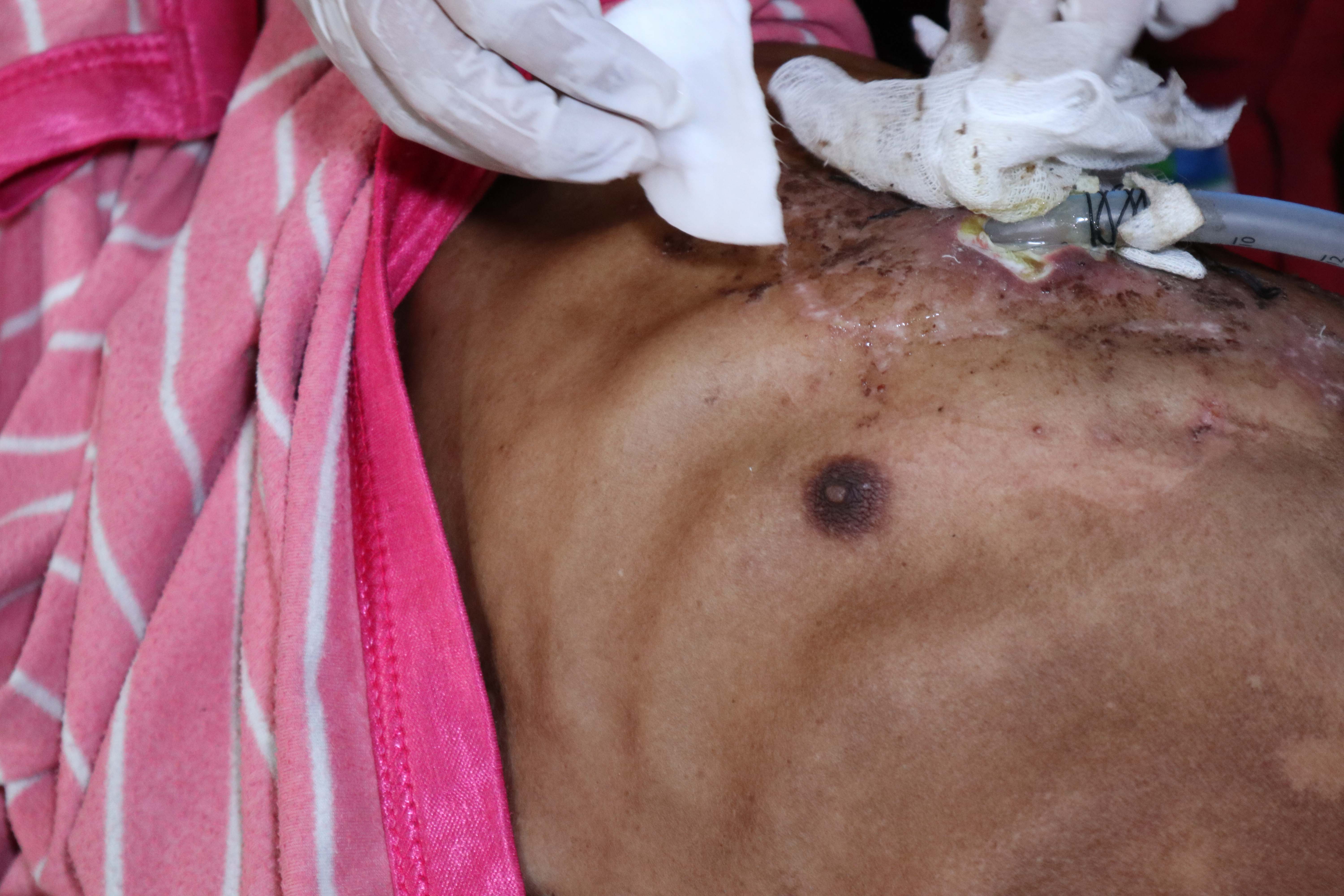 Kini hampir satu tahun pak Atang harus hidup dengan Selang WSD yang tertancap di dada kanan untuk membuang cairan yang terus membanjiri paru-paru beliau. Sakit TB dan tumor kelenjar yang sudah dua tahun di deritanya kini semakin membuat kuli traktor Sawah panggilan ini tidak berdaya, bahkan untuk sekedar bangkit dari tidurpun Ia sudah tak mampu.
