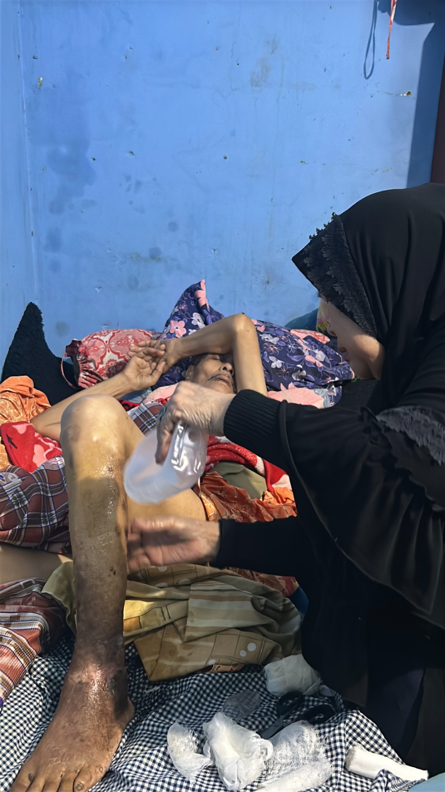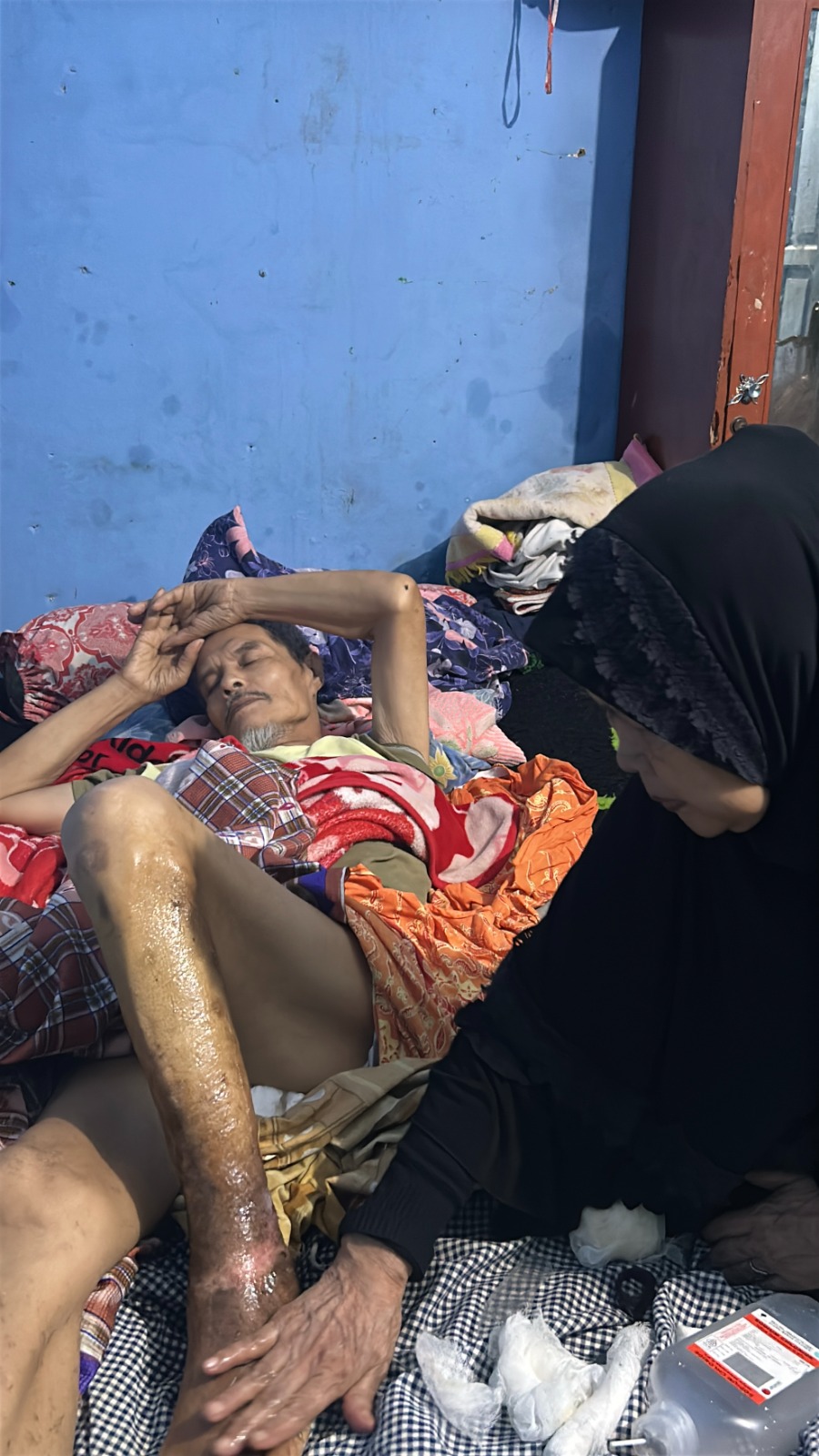 Sudah beberapa lama pak dadan tidak melanjutkan pengobatan hingga kaki membusuk tidak bisa diobati karena tidak ada biaya. Pak Dadan dan istri hanya bisa menangis menahan sakit di dalam gubuk nya yang berukuran 2x2 meter,meratapi nasib dan kesakitan.