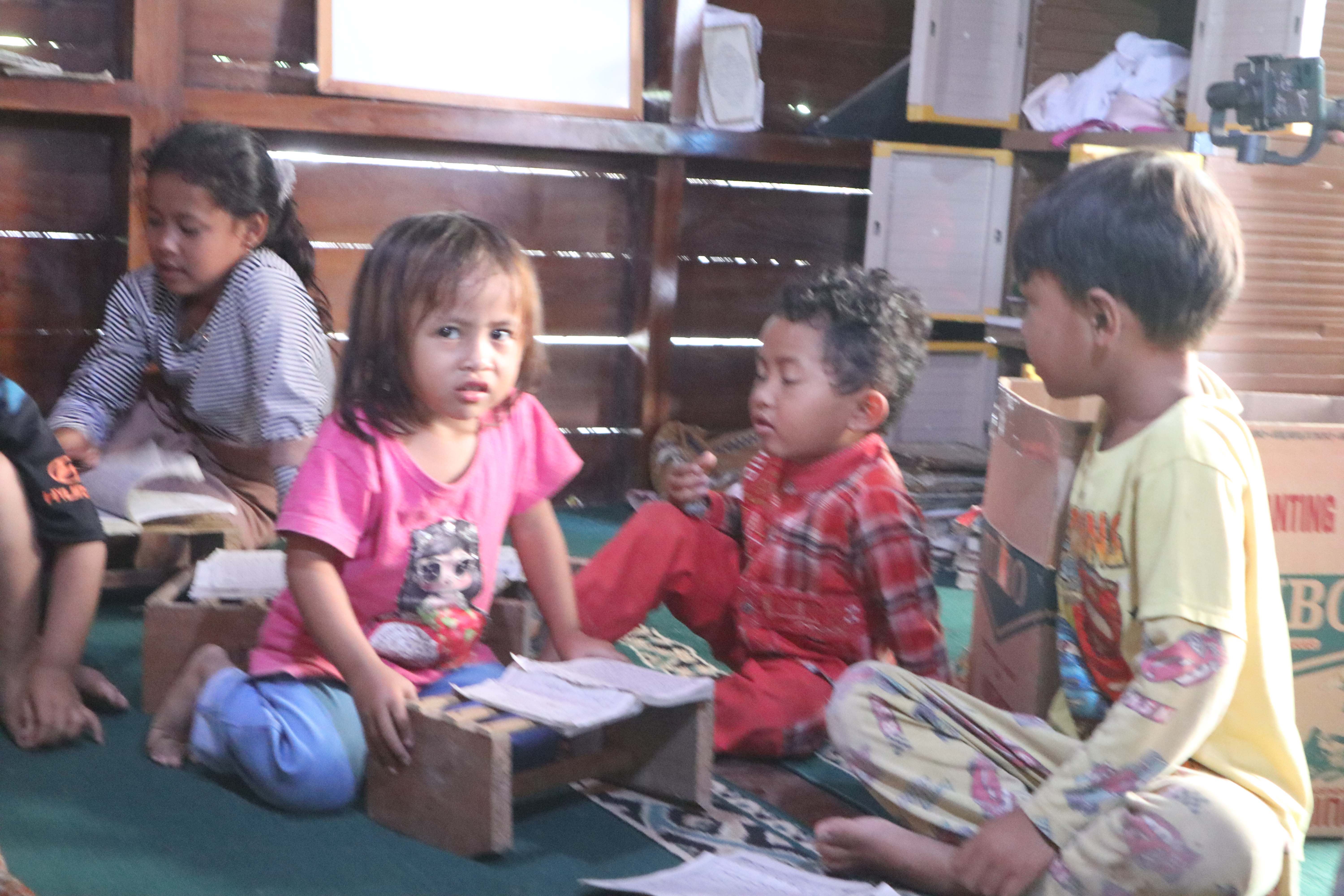 "Kalau dulu ada sekitar 50 orang anak yang mengaji disini, sekarang tinggal 20 orang itupun yang kecil-kecil dan tak jarang harus di jemput ke rumah mereka atau di panggil pake Toa. Sedang yang sudah besar udah pada gak mau mengaji lagi, mereka lebih memilih cari duit dengan memulung atau nyortir" Cerita Abah Dadang kepada kami.