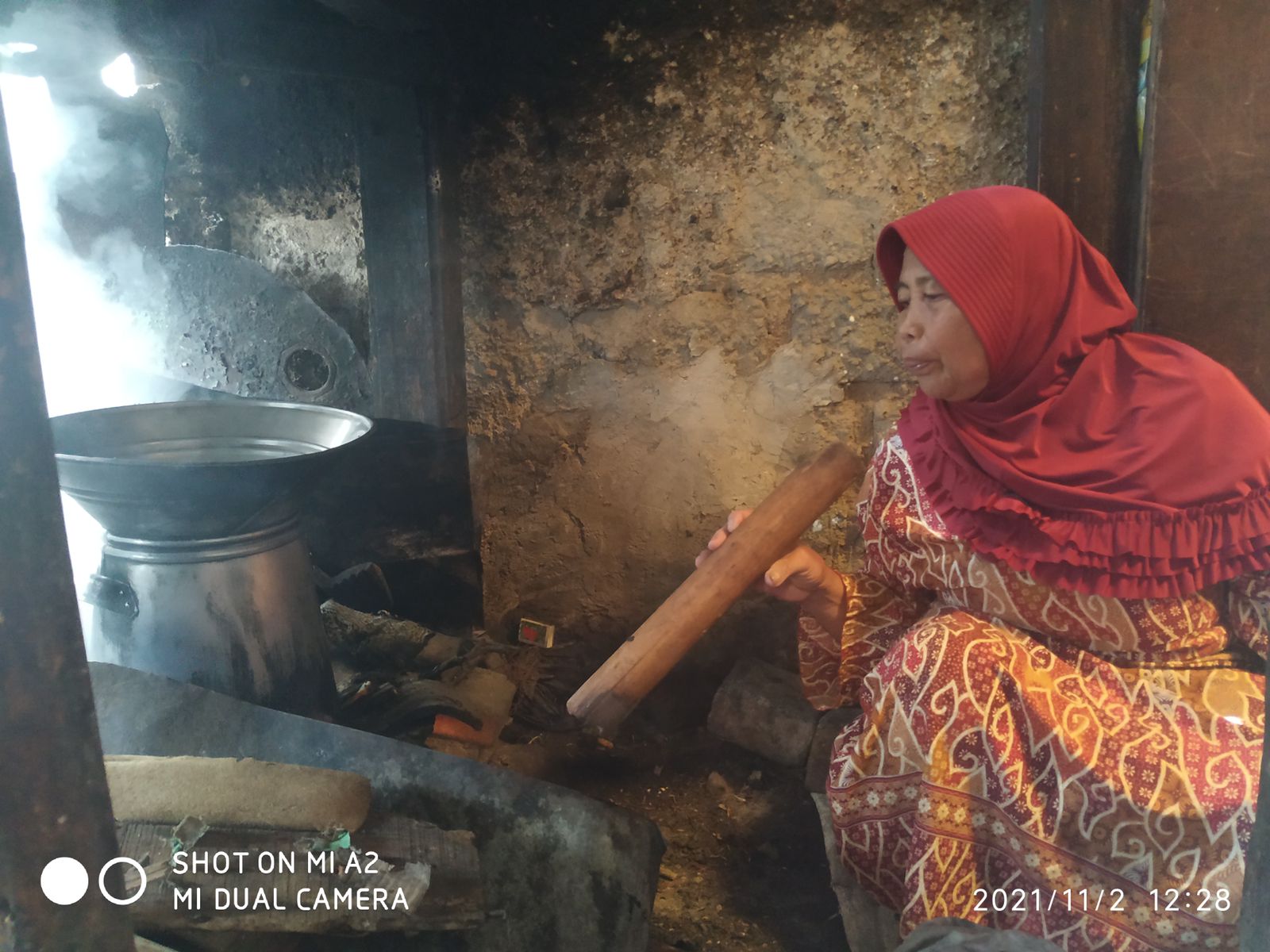 pak Mimin,ketika sampai ke rumah pak Mimin kami mendapati istrinya (ibu Sutinah) sedang membakar di sebuah pembakaran (Hawu kalau orang sunda bilang nya),istrinya pak Mimin sedang menyiapkan air untuk dipakai mandi pak Mimin karena pak Mimin tidak memiliki kompor untuk masak.
