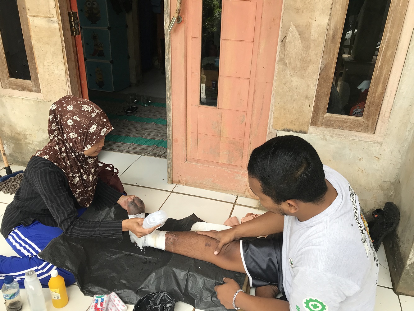 Usianya masih 27, tetapi karena pengobatan kakinya sudah terhenti sejak lama terkendala biaya, kini Pak Rizki terancam benar-benar kehilangan kaki kanannya sepenuhnya. Infeksi yang terus menyebar, nanan, darah yang sesekali keluar, bahkan mulai tercium bau kurang menyenangkan jika perban luka dibuka.