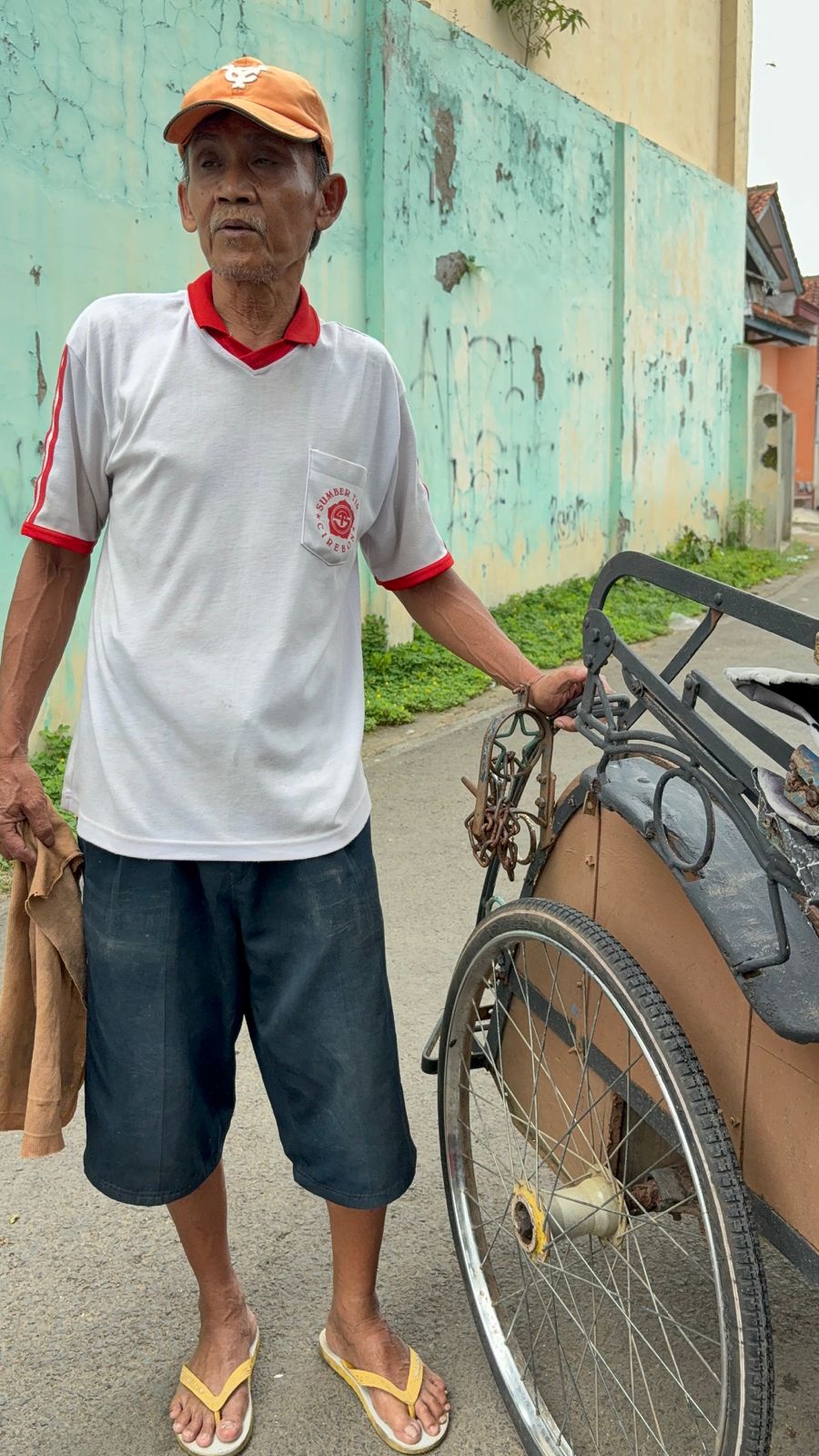 "Saya narik becak untuk membantu kebutuhan sehari hari,,saya juga ingin membawa istri saya berobat tapi belum ada uang."- pak warni dengan bicara tertatih