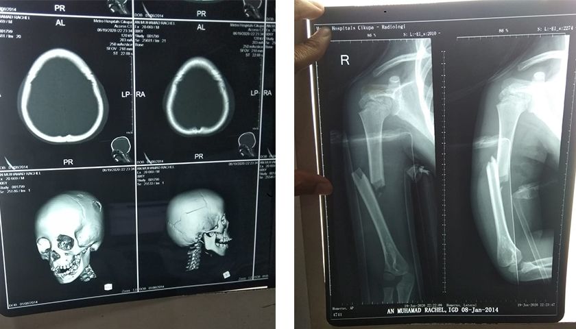 Rachel mengalami cedera di kepala dan hidung, kepala, wajah dan badannya lecet, juga tangan kanan bocah ini patah. Karena kondisinya kian parah, Rachel dirujuk ke RS Fatmawati Jakarta dan harus dilakukan operasi se-segera mungkin.