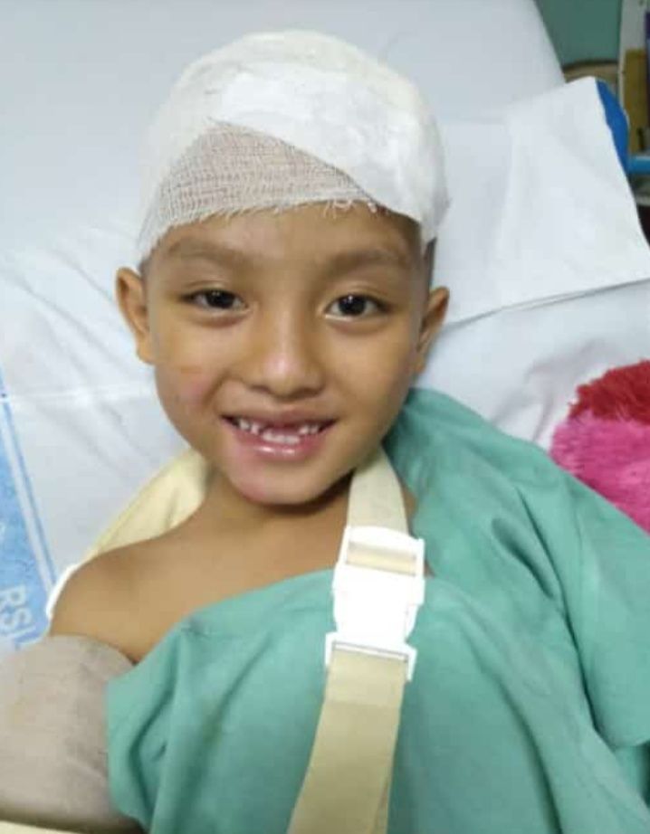 Anak malang ini bernama Muhamad Rachel, berusia 6 tahun anak dari pasangan Bapak Erdiansyah dan Ibu Murniati.