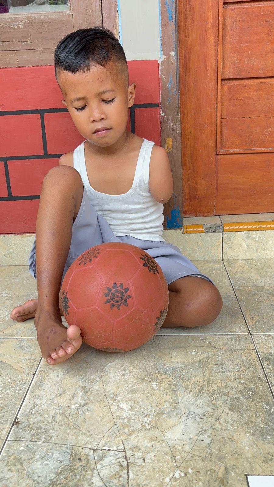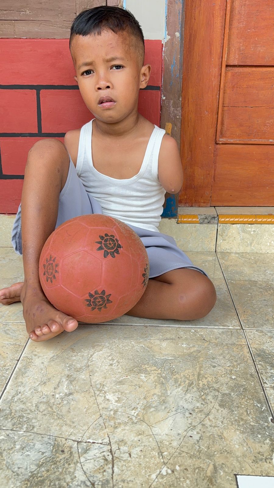 Ibu, kenapa aku dilahirkan tidak seperti anak lainnya? mereka punya tangan lengkap bu, sedangkan aku seperti ini ?