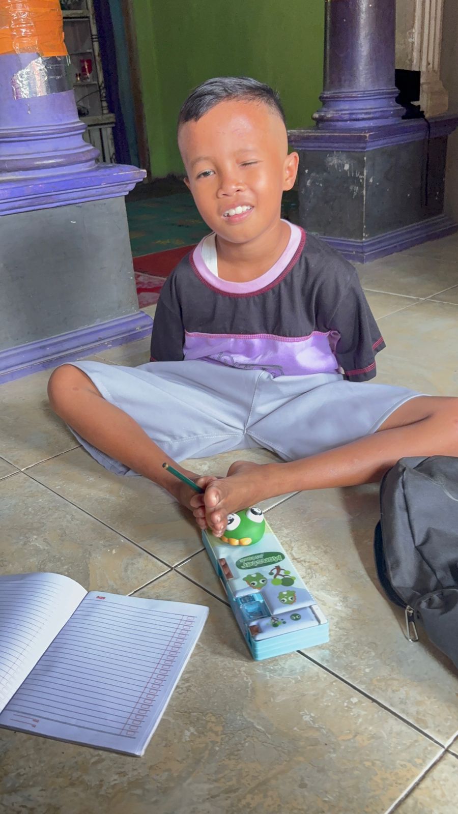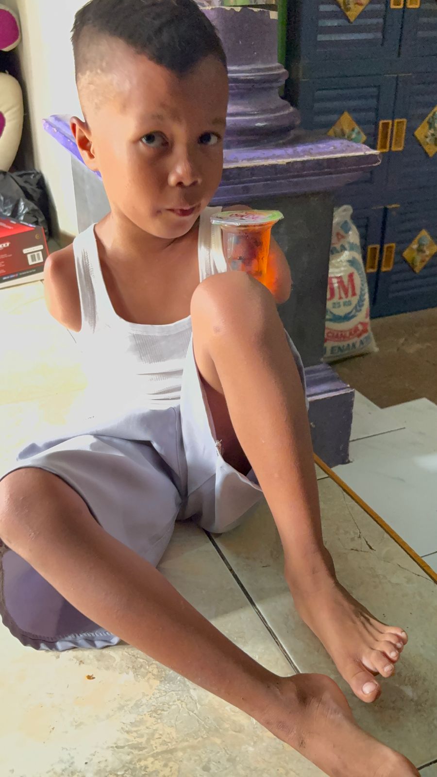 Kisah Pilu Anak Yatim Disabilitas (Rais,8Th) yang Tidak memiliki kedua Tangan