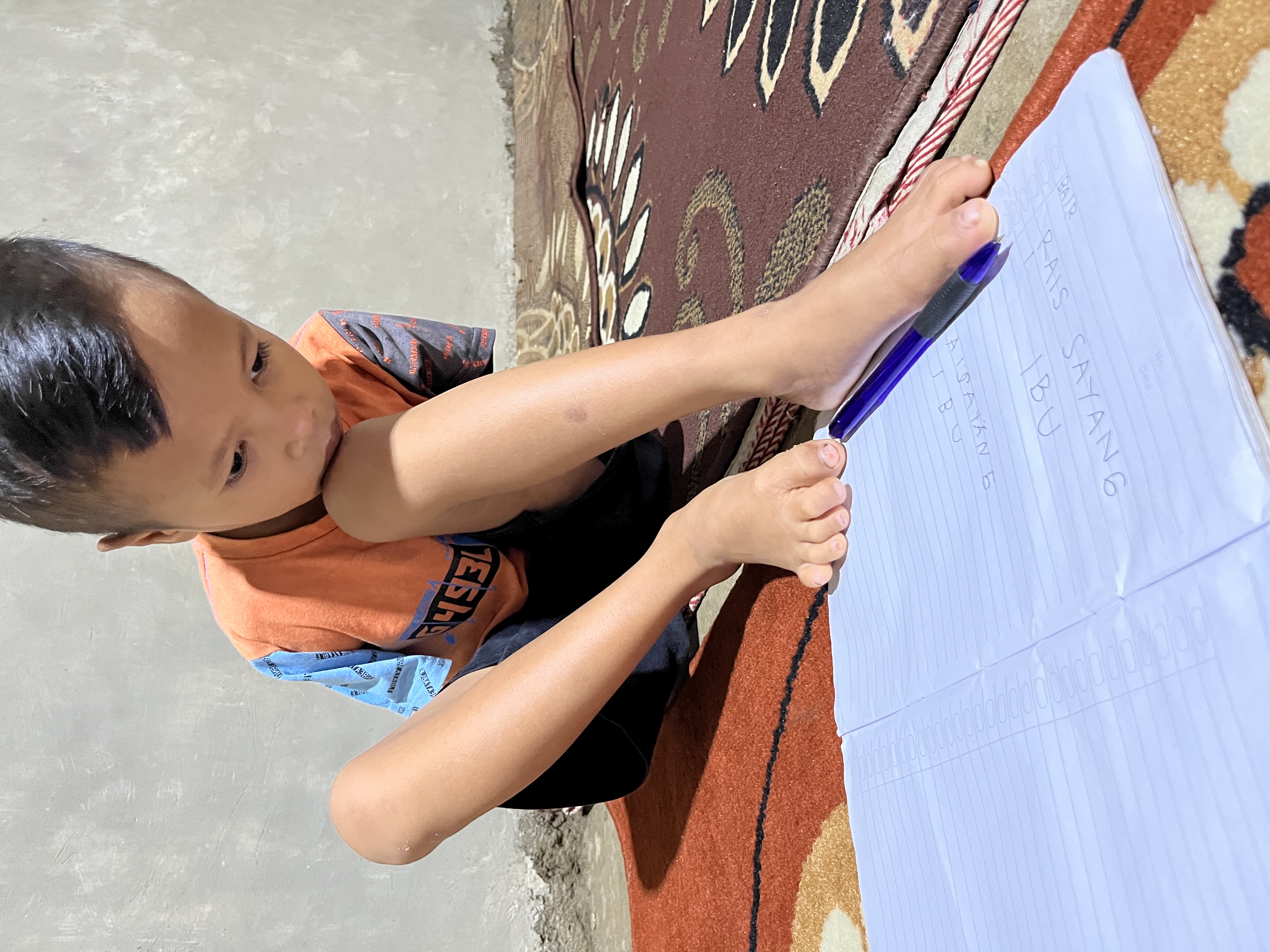 Kisah Pilu Anak Yatim Disabilitas Rais (6) yang Tidak memiliki kedua tangan.