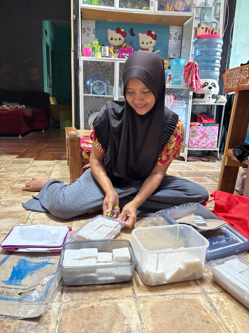 "Sudah 3 bulan lebih saya berjualan Ketan dan peyek kerumah-rumah demi bisa beli susu Reifa,kalau tidak dari hasil saya jualan saya dari mana bisa dapat uang untuk menghidupi mereka."-Bu Nopa
