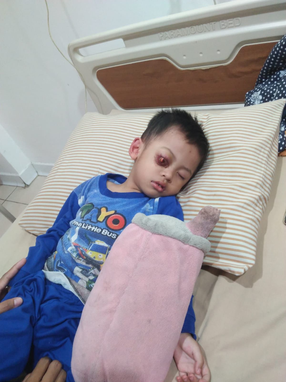 "Matanya sampe sekarang masih terus membesar ditambah darah yang kadang keluar dari matanya dan sesekali Raihan mimisan. Saya yakin pasti rasanya sakit sekali, gak tega liat dia nangis terus.” Ibunya Reihan