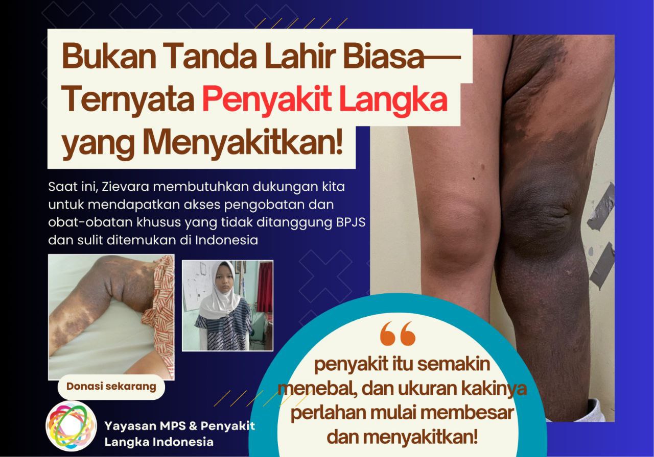 Zievara Sejak lahir memiliki tanda lahir berupa flak hitam samar dikaki kanannya. Saat itu, dokter mengatakan itu hanyalah tanda lahir biasa. Kami percaya dan menjalani hidup seperti biasa. Selama 10 tahun, zievara tumbuh seperti anak-anak lainnya—ceria, aktif, dan sehat. Tapi perlahan, tanda lahir itu berubah warna, menjadi lebih gelap, dan kaki nya mulai membesar. Lalu awal tahun 2022, zievara terjatuh di kamar mandi. Setelah diperiksa, ternyata terjadi dislokasi di tulang pinggul