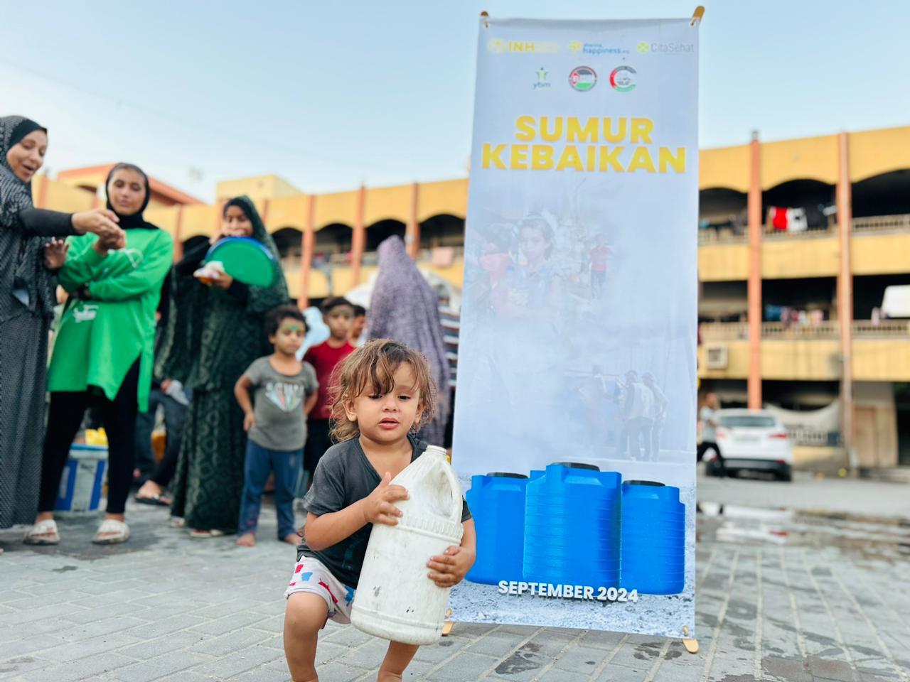 Warga Palestina yang mengungsi di wilayah Jalur Gaza Selatan juga berjuang untuk memperoleh dan membawa air ke tenda-tenda mereka ditengah penutupan seluruh sumur air akibat genosida Israel yang sedang berlangsung hingga saat ini.
