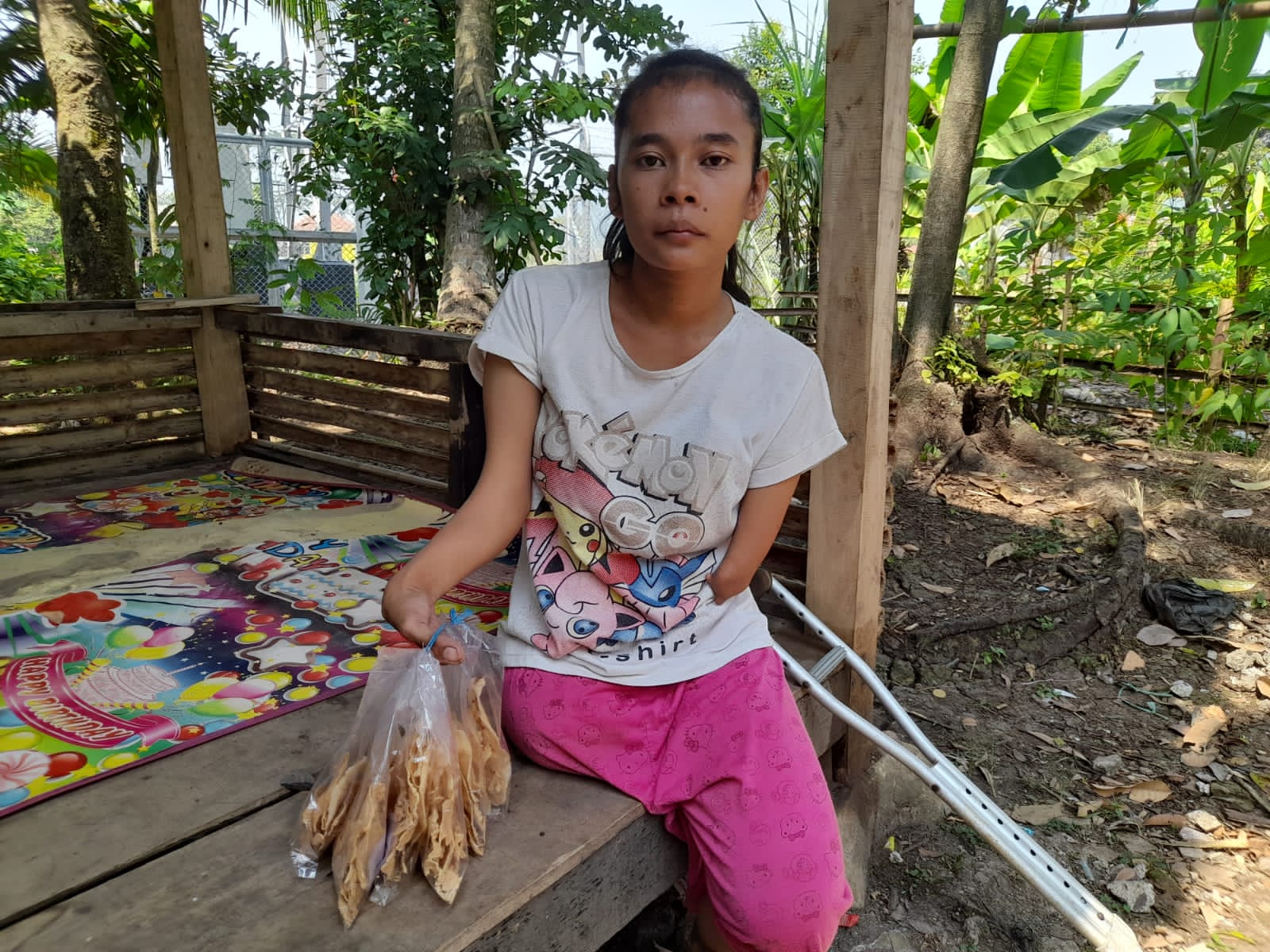 Terlahir tanpa kedua tangan dan kaki yang sempurna. Seorang ibu harus terus berjalan dengan satu kaki menjajakan peyek dagangannya demi bisa bertahan hidup.