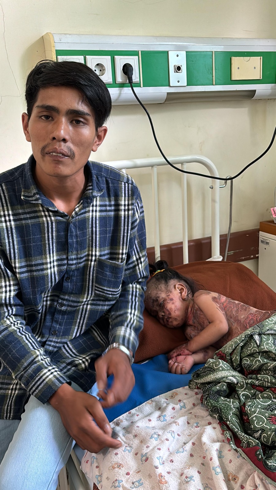 Awalnya hanya luka kecil di wajah, namun lambat laun luka itu terus menyebar hingga ke seluruh tubuh dik Rahma. Tak hanya luka bakar yang muncul, tapi lukanya penuh dengan darah dan nanah yang terus menetes.