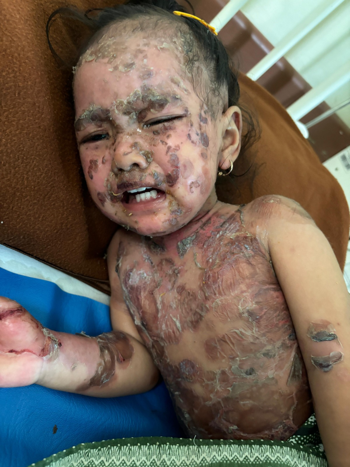 Dik Rahma, bocah berusia 2 tahun kini harus berjuang melawan penyakit kulit langka yang membuat sekujur tubuhnya penuh luka. Kulit dik Rahma awal nya menghitam seperti terbentur meja, lalu memerah dan mengeluarkan air.