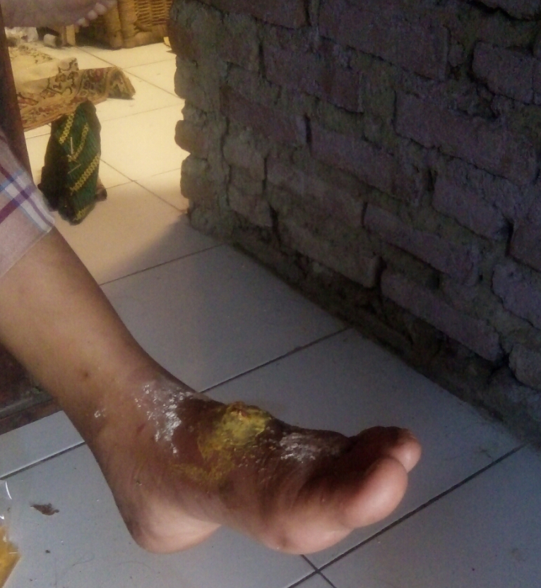Ibu Kartini atau yang biasa dipanggil ibu Tini adalah seorang ibu rumah tangga usianya 39 tahun dan sudah sekitar 2 minggu sudah tidak bisa bekerja karena sakit dikakinya,jangankan untuk berjalan terkadang untuk berdiripun tidak bisa harus dibantu oleh anak-anaknya.Awalnya kaki terasa berat tidak dirasa karena tersengat serangga hingga kakinya membengkak,sudah diupayakan berobat ke puskesmas namun katanya harus diperikasakan ke Dokter.Karena tidak punya BPJS/KIS dan uang tidak ada untuk berobat ke dokter atau Rumah sakit ibu Tini hanya pasrah dan kakinya diobati dengan Ramuan tradisional.