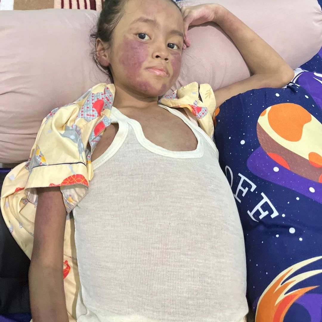 Kini kulitnya memerah, perutnya membesar, dan ia harus menjalani pengobatan jangka panjang, termasuk kemoterapi dan kontrol rutin tiga kali seminggu di RSCM.