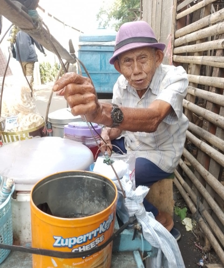 Dengan sisa tenaga yang Abah miliki, ia terus berjalan, padahal tubuh bungkuknya sudah lemah dan ia paksakan terus bekerja demi sesuap nasi dengan jualan es cincau.