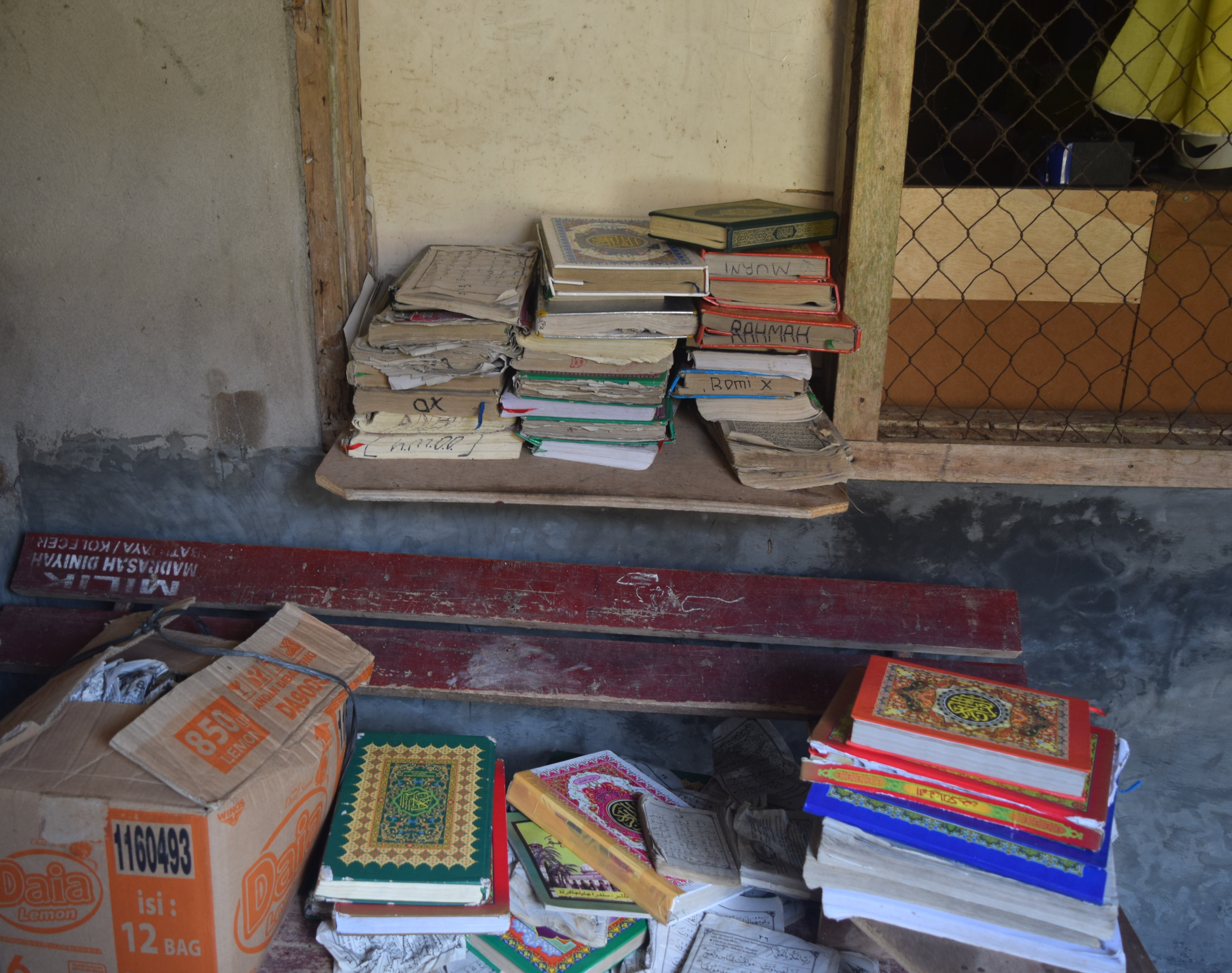 Ustadz Dayat dan istri tidak memiliki rumah, beliau tinggal di salah satu sudut madrasah yang di pinjami oleh pengurus madrasah