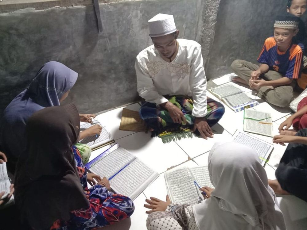 "Setiap malam ada 30 anak belajar mengaji, berdesak-desakan disini, jika hujan ngajinya libur karena bocor atap ruangan disini" ujar Ustadz Dayat