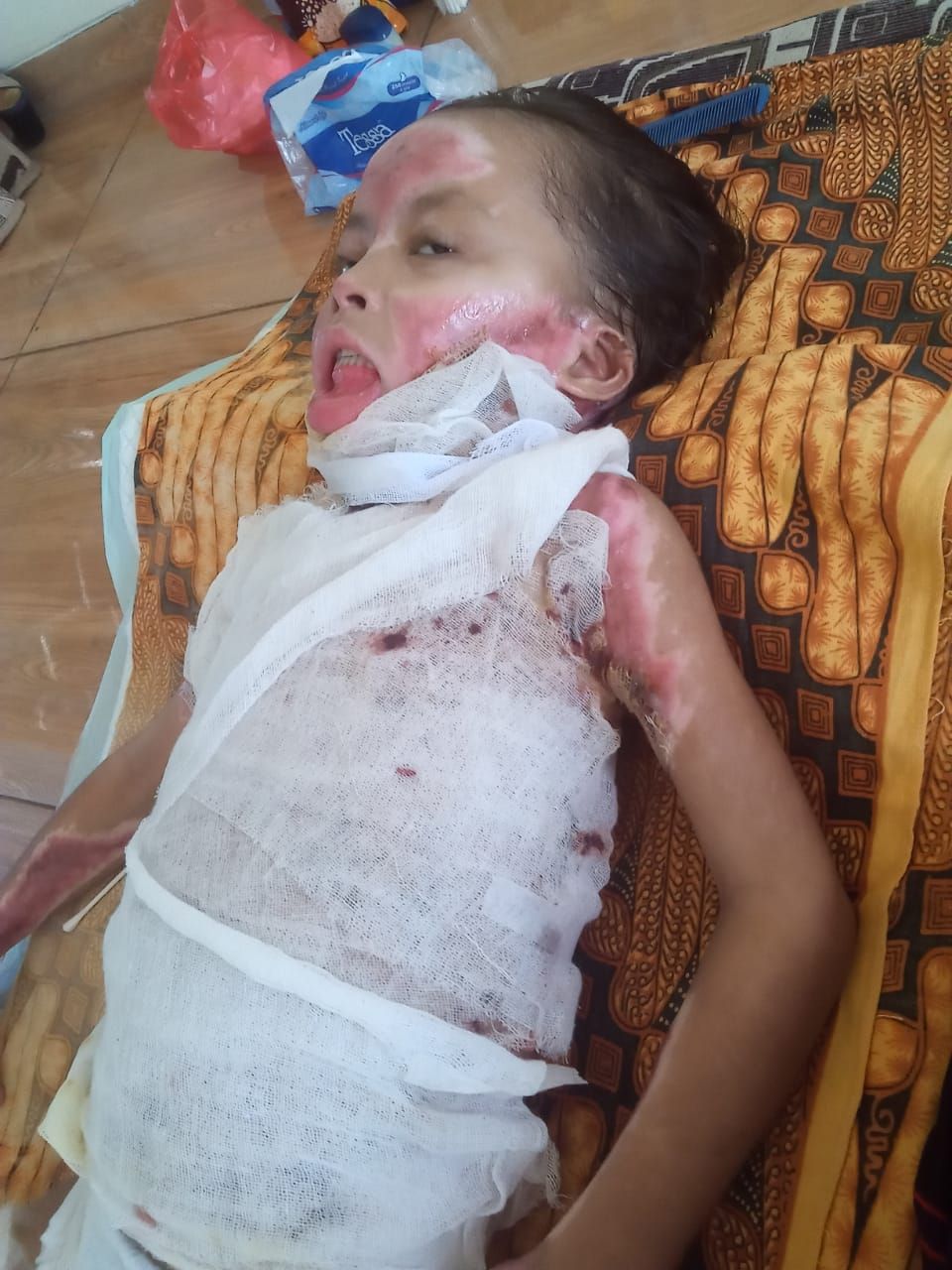 Seluruh badannya penuh dengan luka bakar, Nadia hanya bisa terbaring, gerak sedikit saja ia bisa menjerit kesakitan, luka bakar yang masih basah menyebabkan perih yang luar biasa.