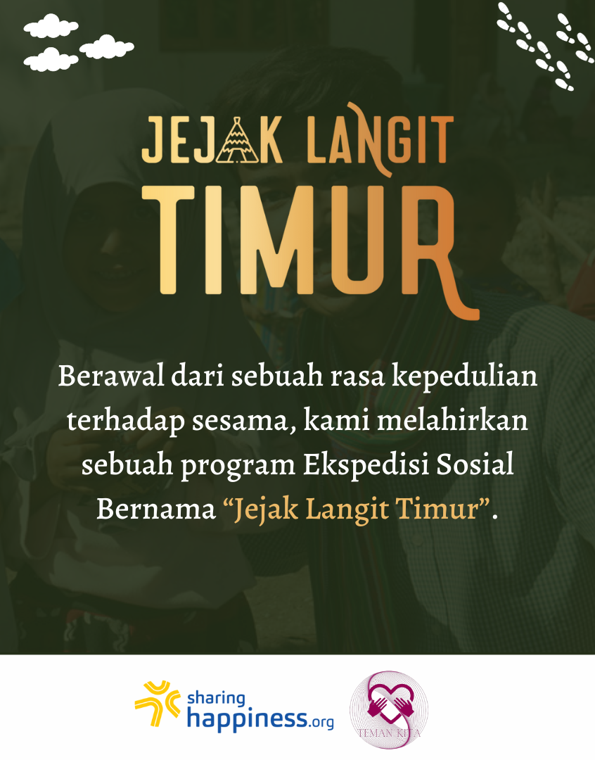 Sharing Happiness bekerja sama dengan Teman Kita Charity membuat solusi untuk mengatasi masalah Pendidikan yang ada di Kabupaten Timor Selatan. Berawal dari sebuah rasa kepedulian terhadap sesama, kami melahirkan sebuah program Ekspedisi Sosial Bernama “Jejak Langit Timur”.