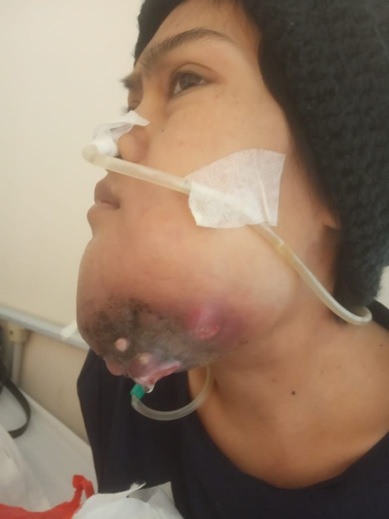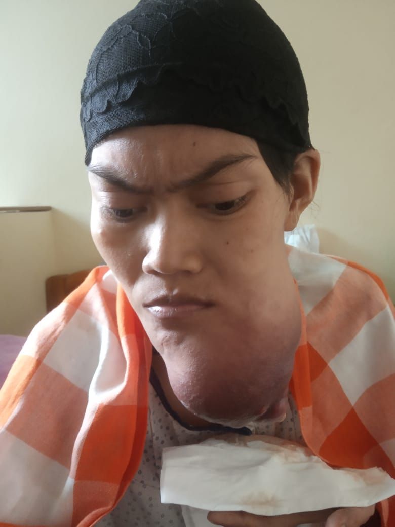 Tak disangka, Bu Hadijah harus menjalani kemoterapi sampai 3 kali, sempat mengecil tapi tak lama muncul benjolan kecil dibawah dagu kirinya.