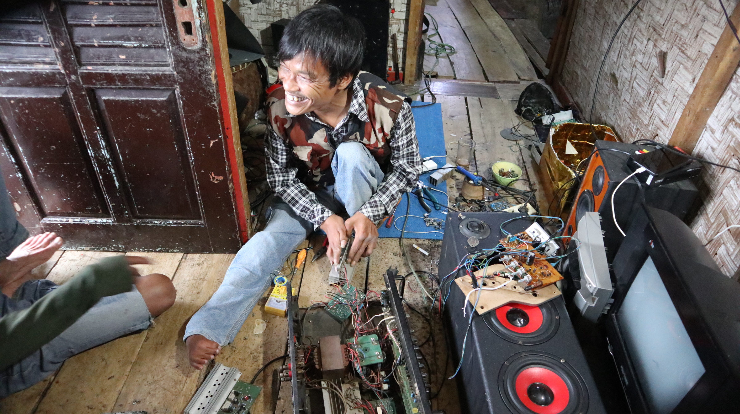 Terlahir dengan kondisi istimewa, Kang Opan (48) tetap semangat berjuang mencari nafkah untuk keluarga kecilnya. Meski harus berjalan menggunakan kedua tangannya yang juga kurang sempurna, Kang Opan tidak pernah menolak jika ada orang yang meminta jasanya memperbaiki TV atau elektronik lainnya.