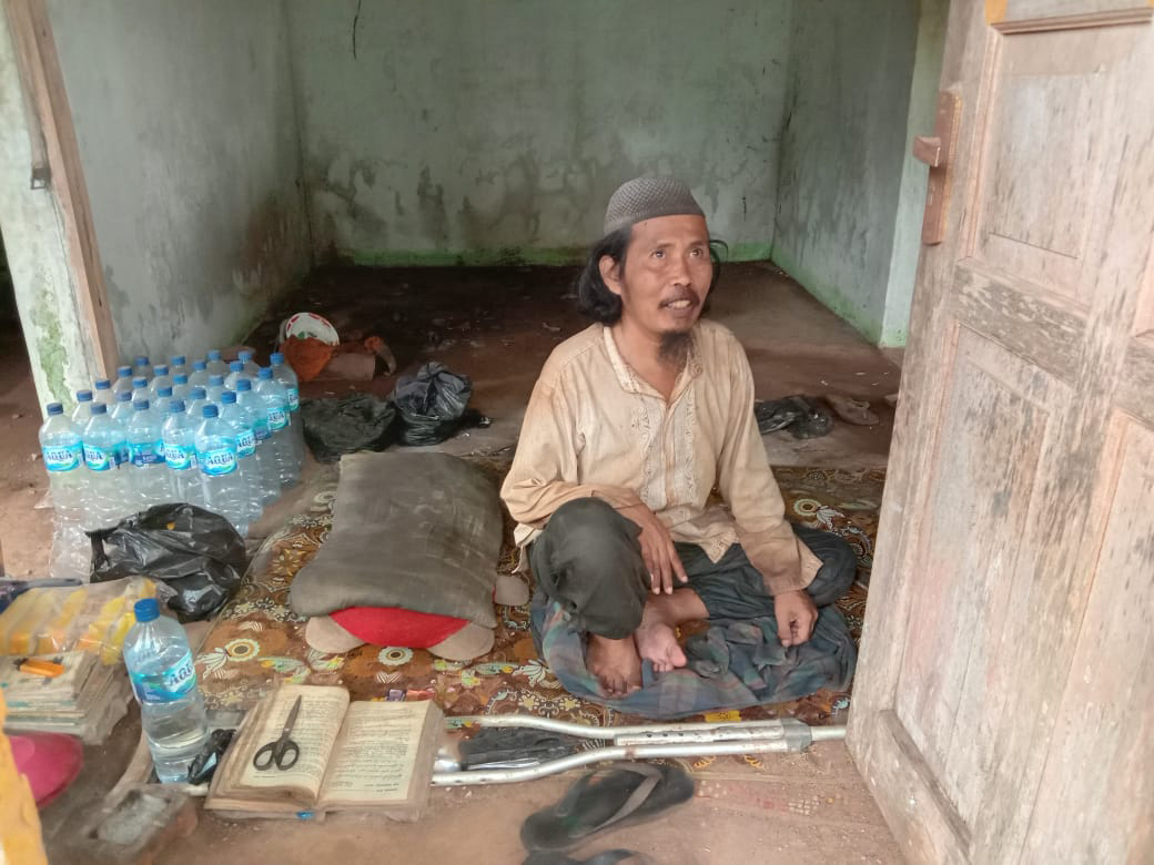 Rumahnya tak terawat, ia pun tak bisa bekerja. Meski sudah lama, kaki Abah terasa nyeri. Abah tak memiliki penghasilan. Abah hidup dari belas kasih warga dan tetangganya yang peduli. Sayang, bantuan itu tak setiap hari datang. Abah lebih sering menahan lapar dan mengisi perutnya dengan air putih saja.