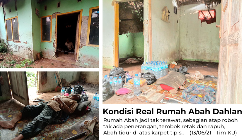 "Kasihan Abah.. kaki beliau patah dan hidup sendiri tanpa ada yang mengurus. Abah cuma minum air setiap hari." ucap tetangga Abah Dahlan