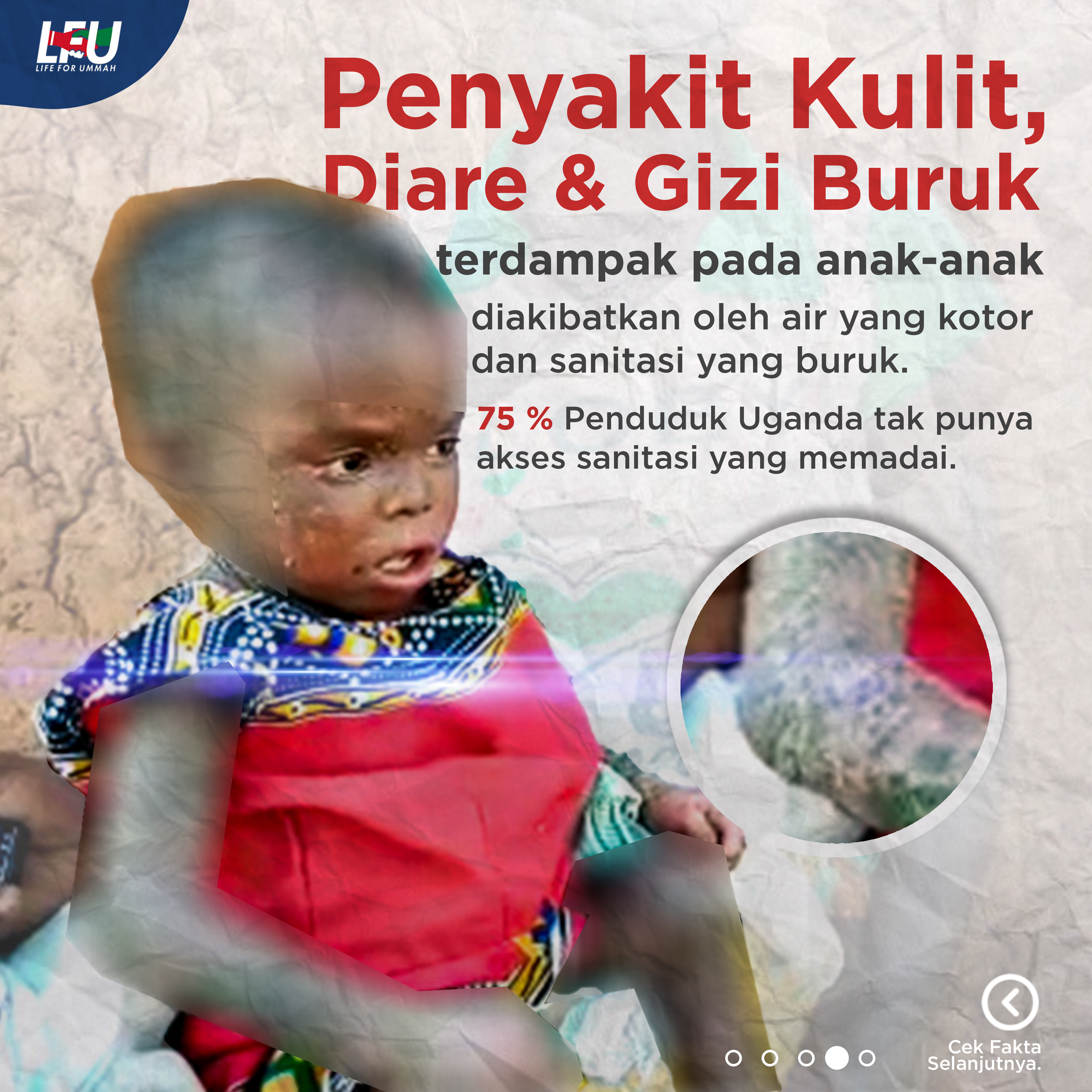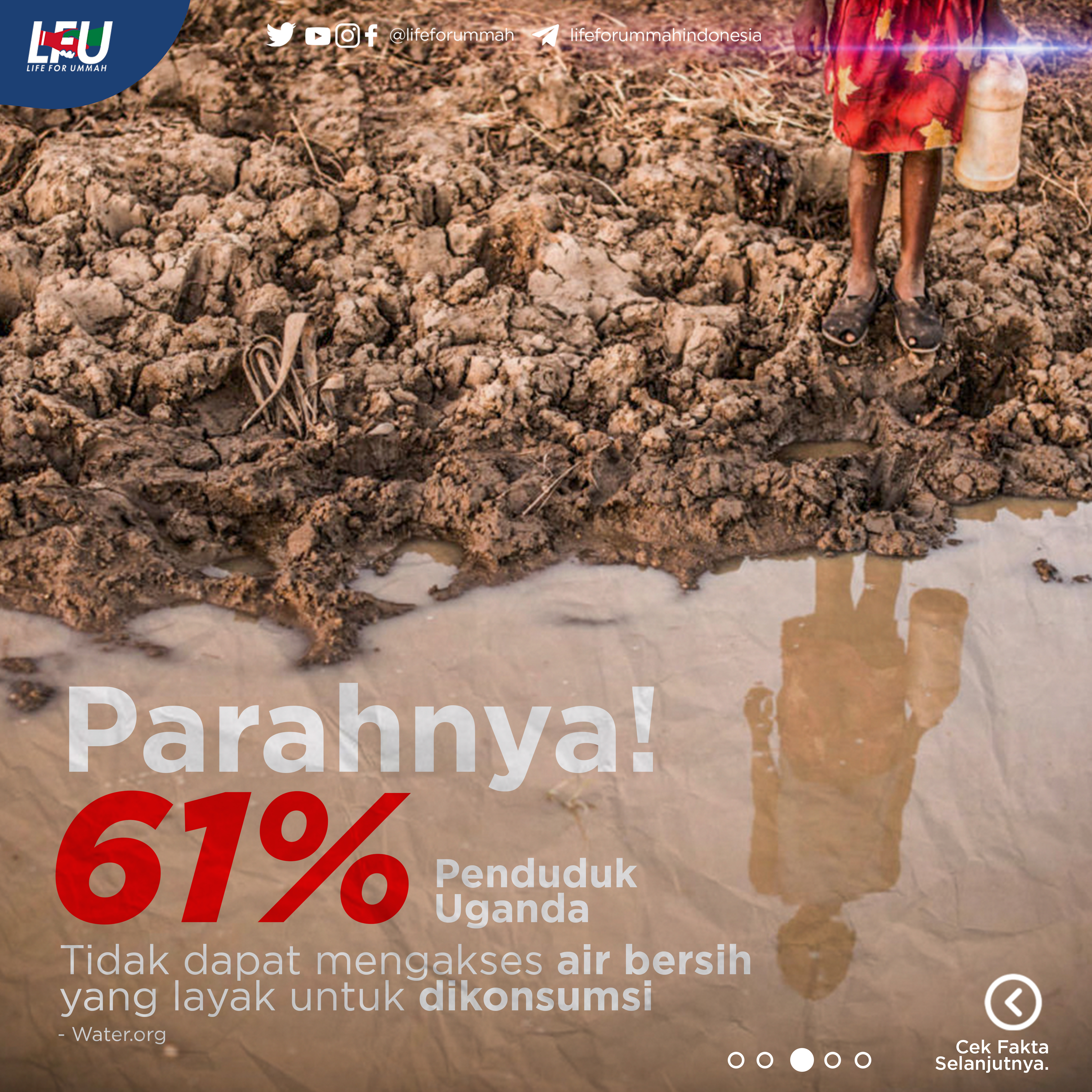 Uganda sering ditimpa masalah bertubi-tubi. Masalah kesehatan, tingginya angka putus sekolah pendidikan dasar, kemiskinan, kelaparan, dan migrasi. Semuanya bersumber dari sebuah mata rantai : Kekeringan dan krisis air.