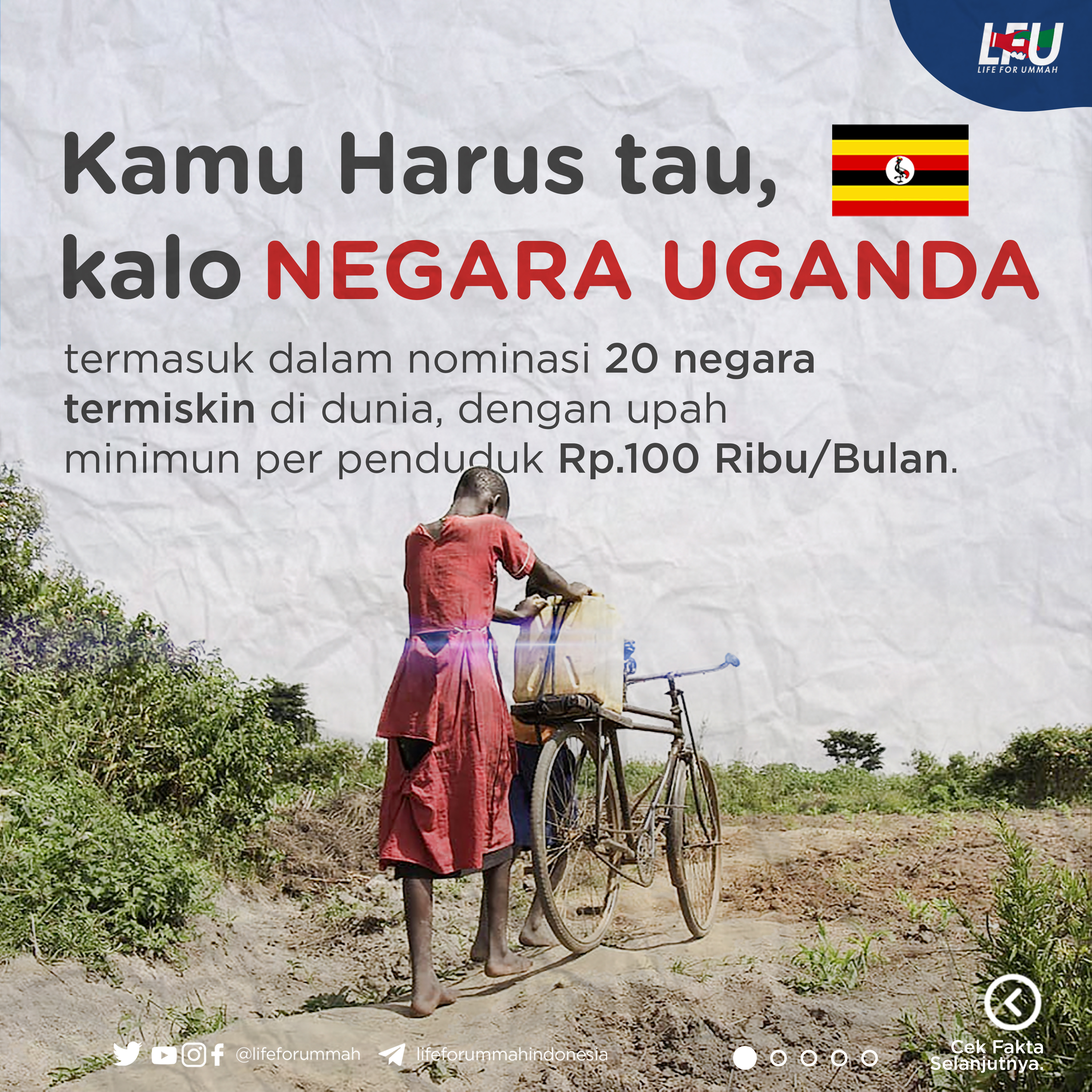 Uganda, negara yang terletak di deretan Afrika Timur ini mungkin jarang kita dengar kabarnya. Tapi sesungguhnya banyak sekali fakta-fakta kondisi masyarakat Uganda yang akan mengetuk hati nurani kita.