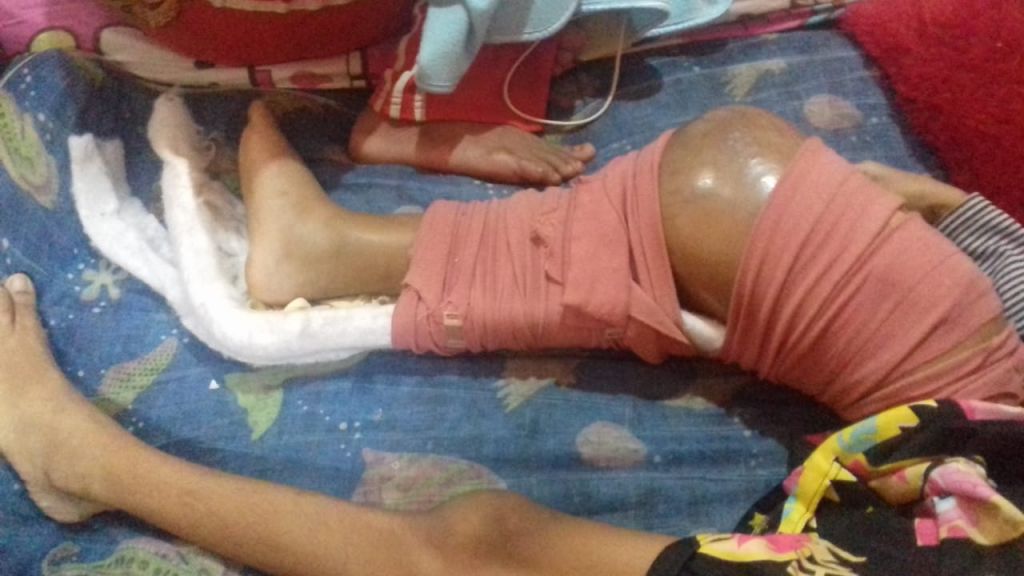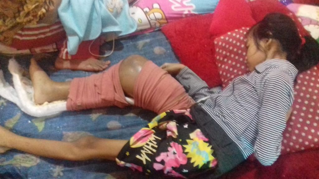 Bocah berumur sepuluh tahun itu bernama Nabila Khoeru Nisa, hanya bisa terbaring lemah dengan kakinya yang membengkak.