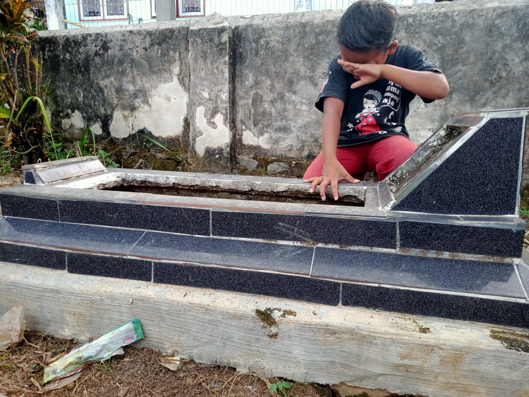 Kami tinggal di sebuah gubuk bocor. Jika hujan turun, aku dipeluk ibu di pojok rumah. Terkadang, untuk sekedar mengeluh dan melepas kangen, aku berlari ke makam ayah, berharap agar ayah bisa hadir di tengah-tengah kami, bisa memperbaiki rumah agar nyaman ditempati.