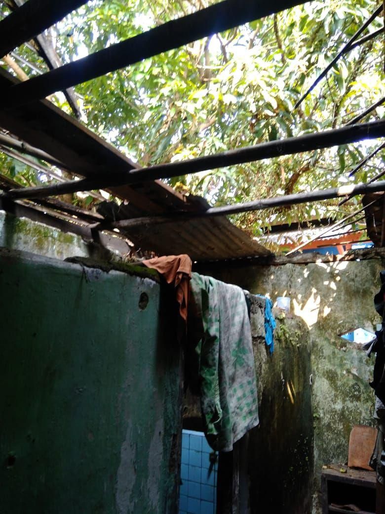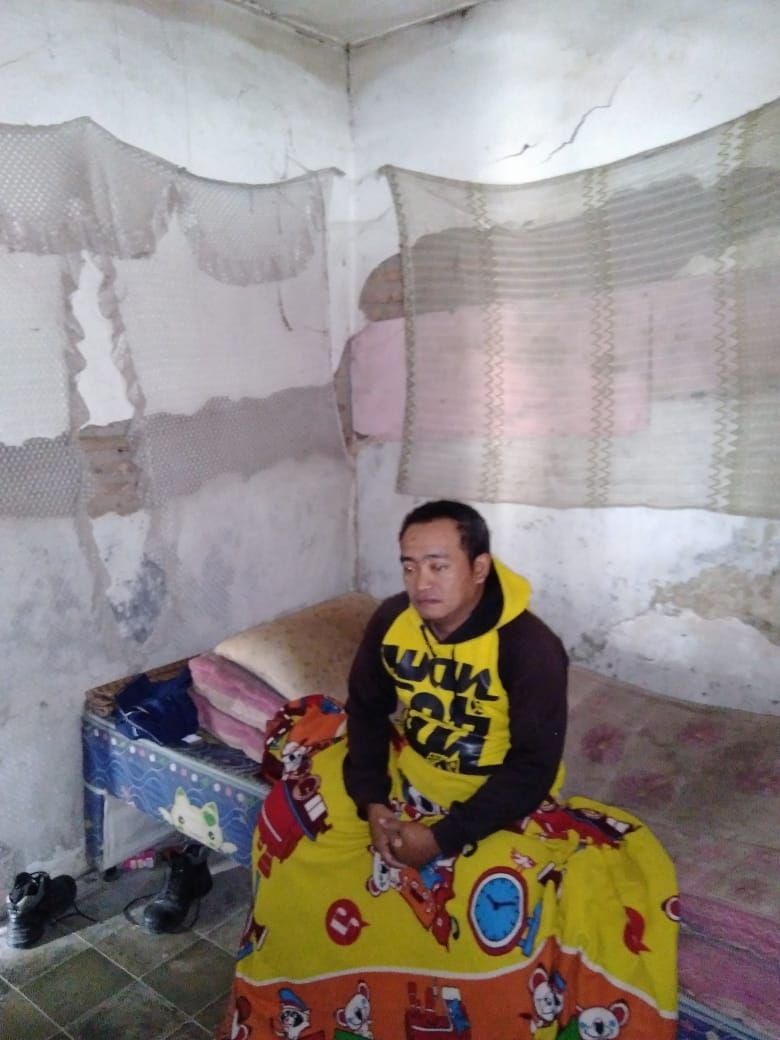 Jangankan untuk memperbaiki rumah yang sudah usang, untuk makan pun terkadang diberi oleh tetangga dan hasil kerja sebagai ojek yang motornya pun dipinjam dari tetangga.