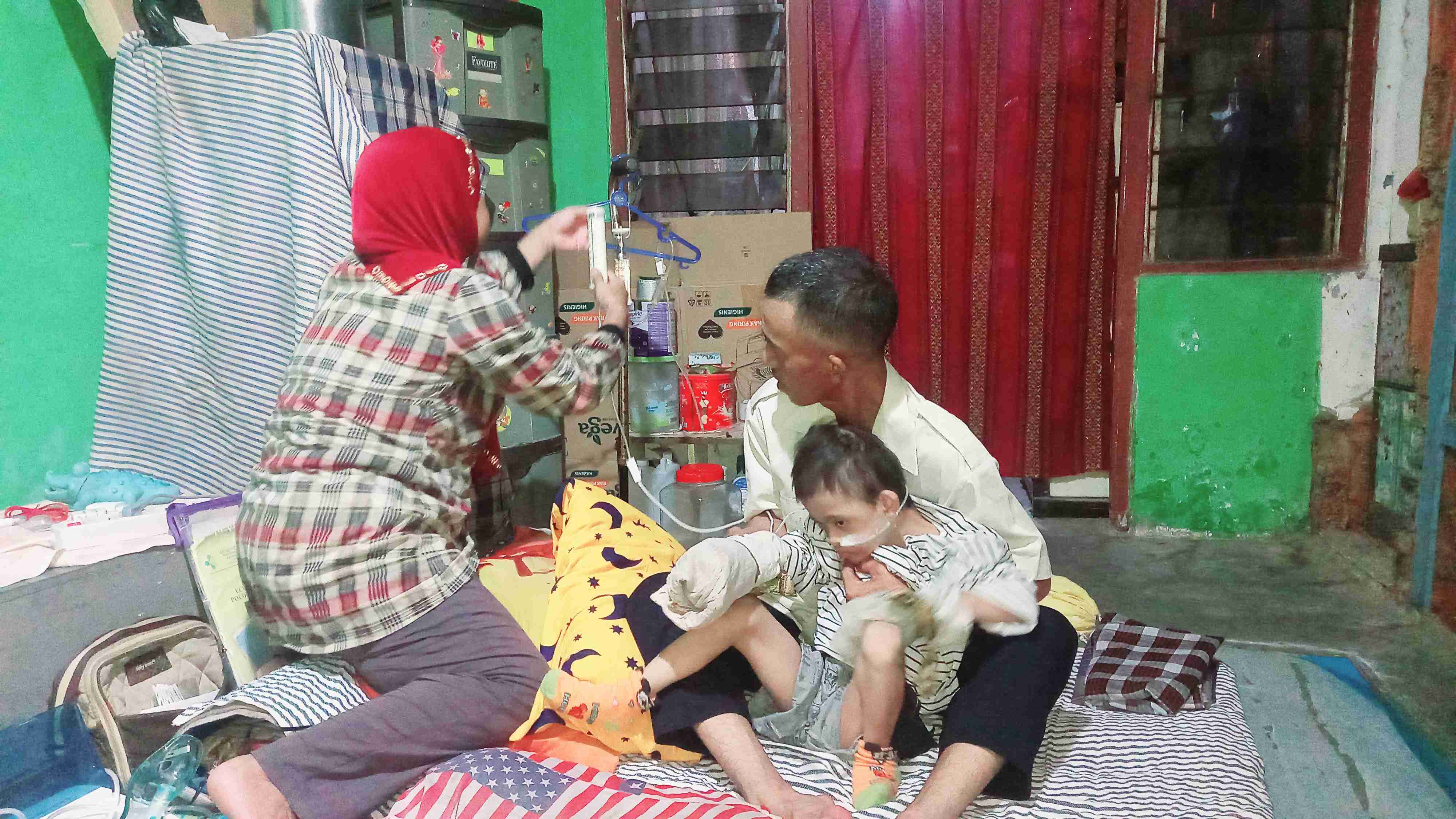 Orang tuanya berharap semoga ada orang baik yang membantu pengobatan anaknya. Ingin rasanya melihat anaknya bisa sembuh dan bertumbuh seperti anak seusianya.