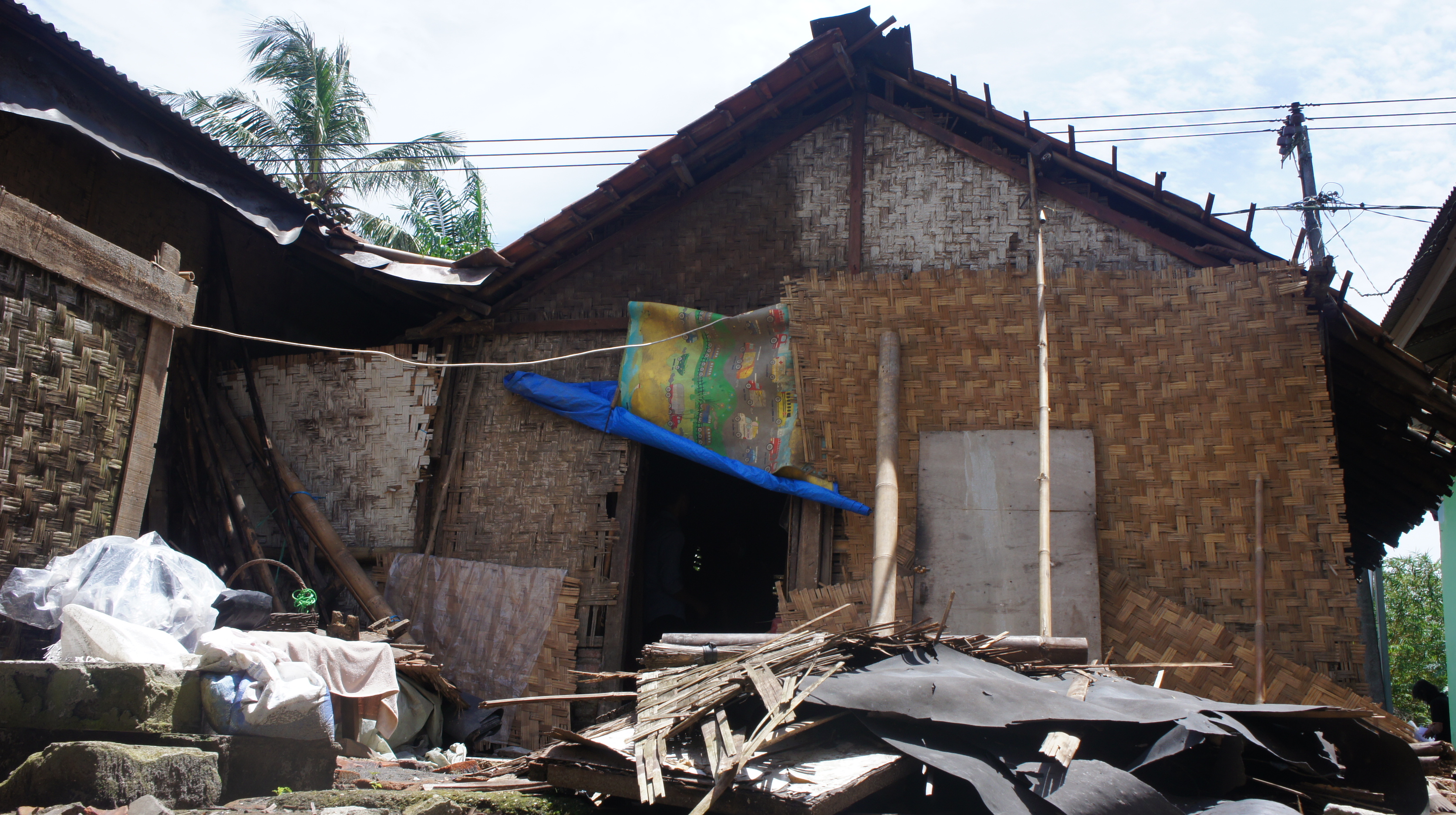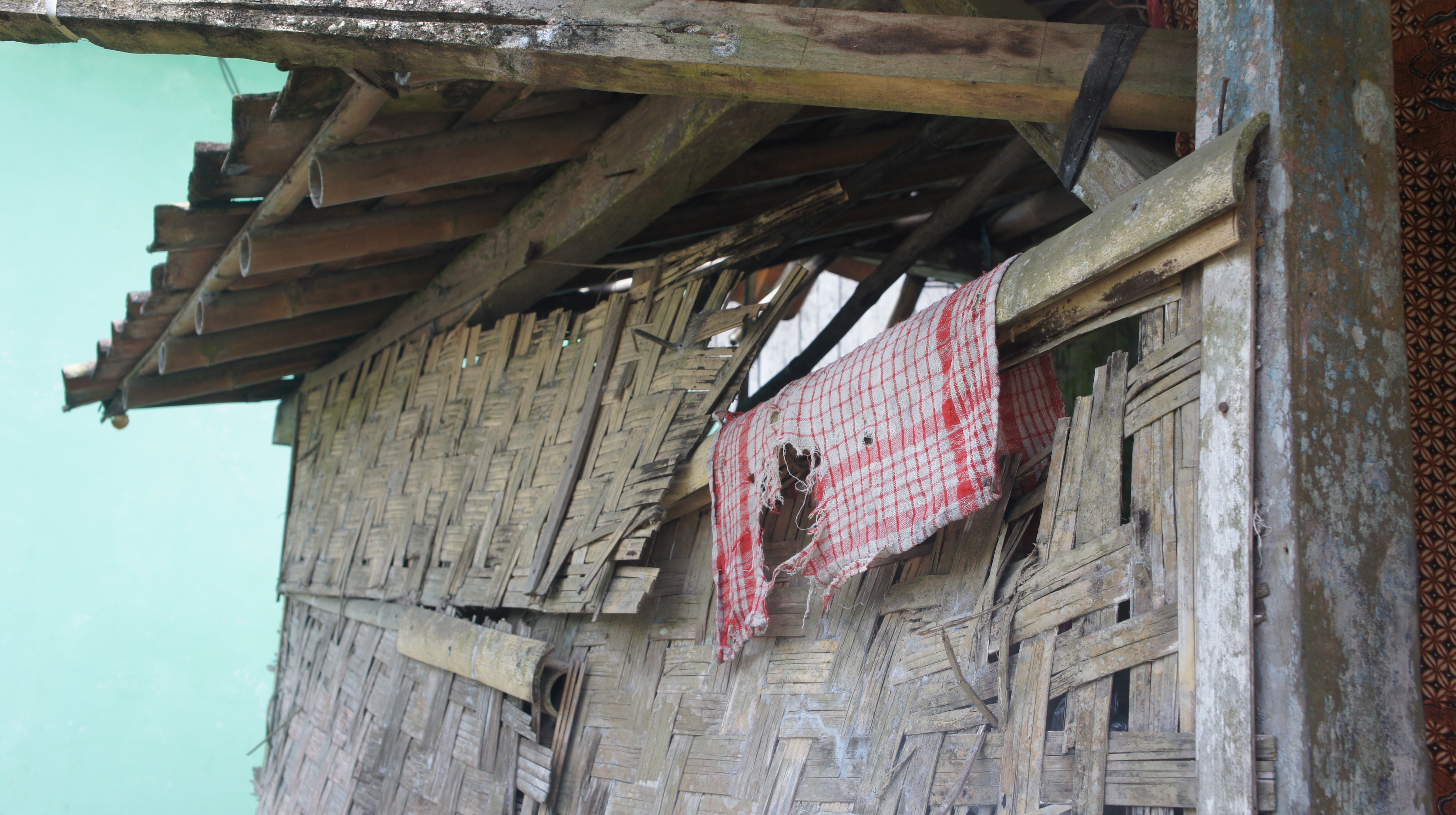 Beberapa bagian bilik dindingnya sudah rusak temakan usia, kayu-kayu penopangnya sudah miring.