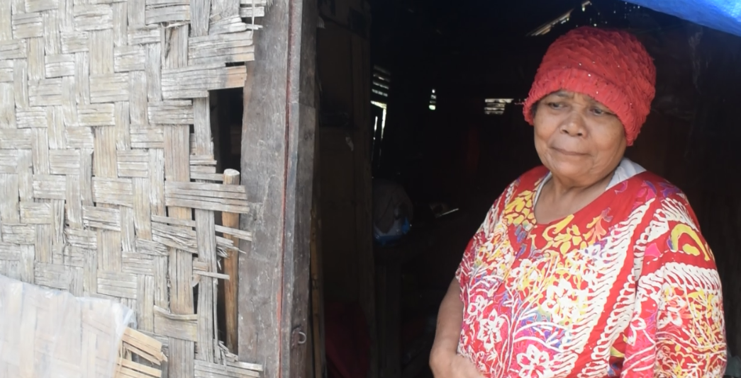 Saat hujan turun, Mak Patonah (69) harus mempersiapkan minimal 10 ember untuk menampung air yang masuk dari setiap bagian rumahnya yang bocor. Saat malam hari tiba, udara dingin menembus kulitnya yang sudah keriput.