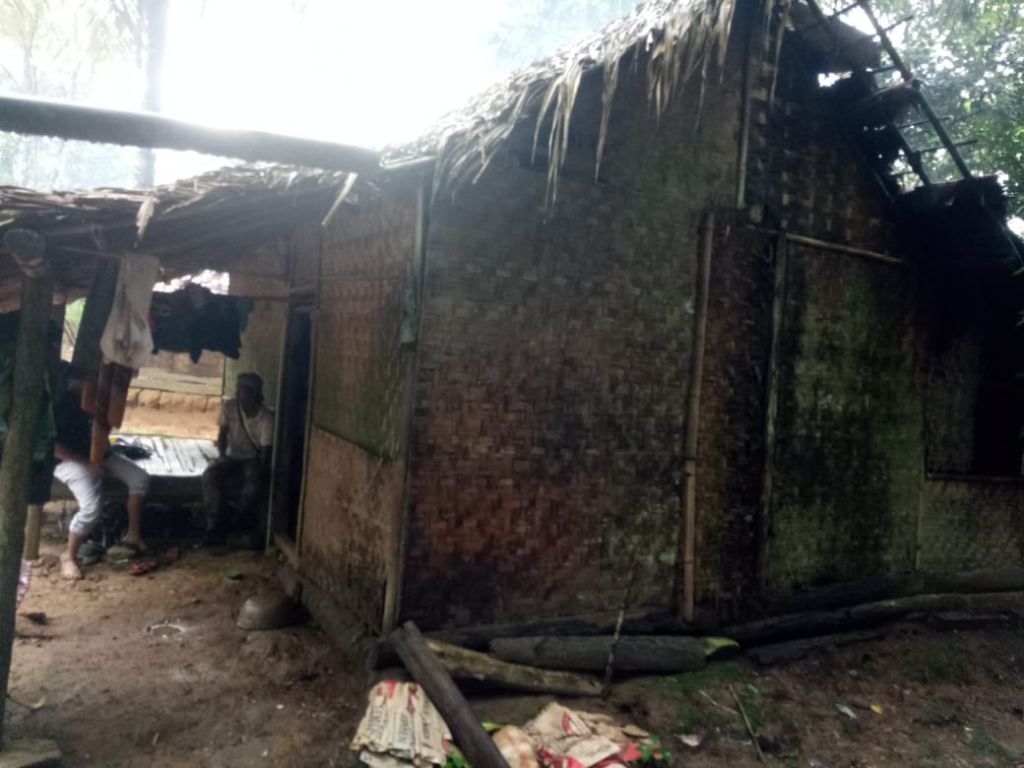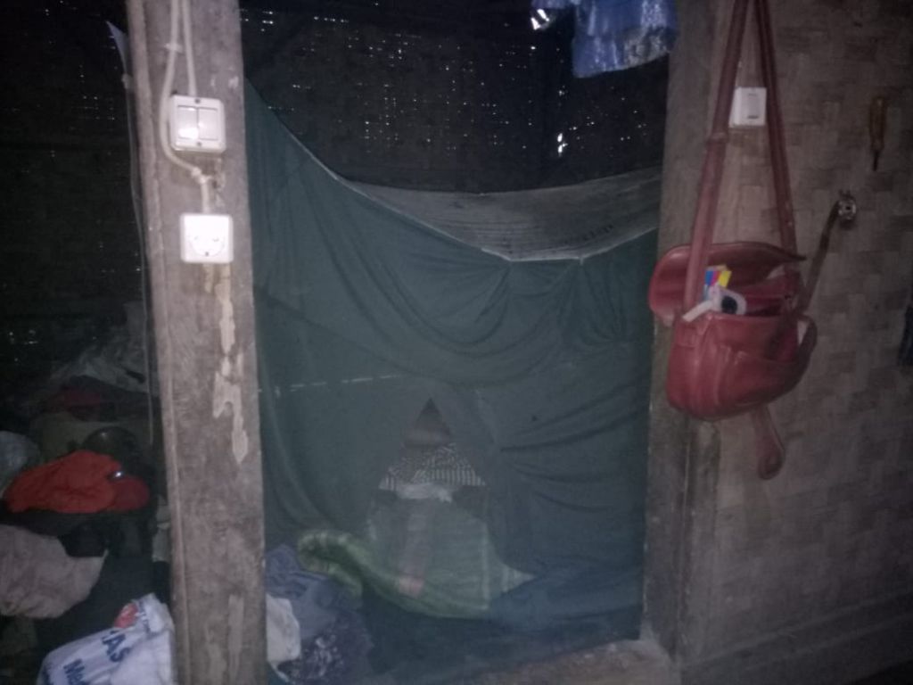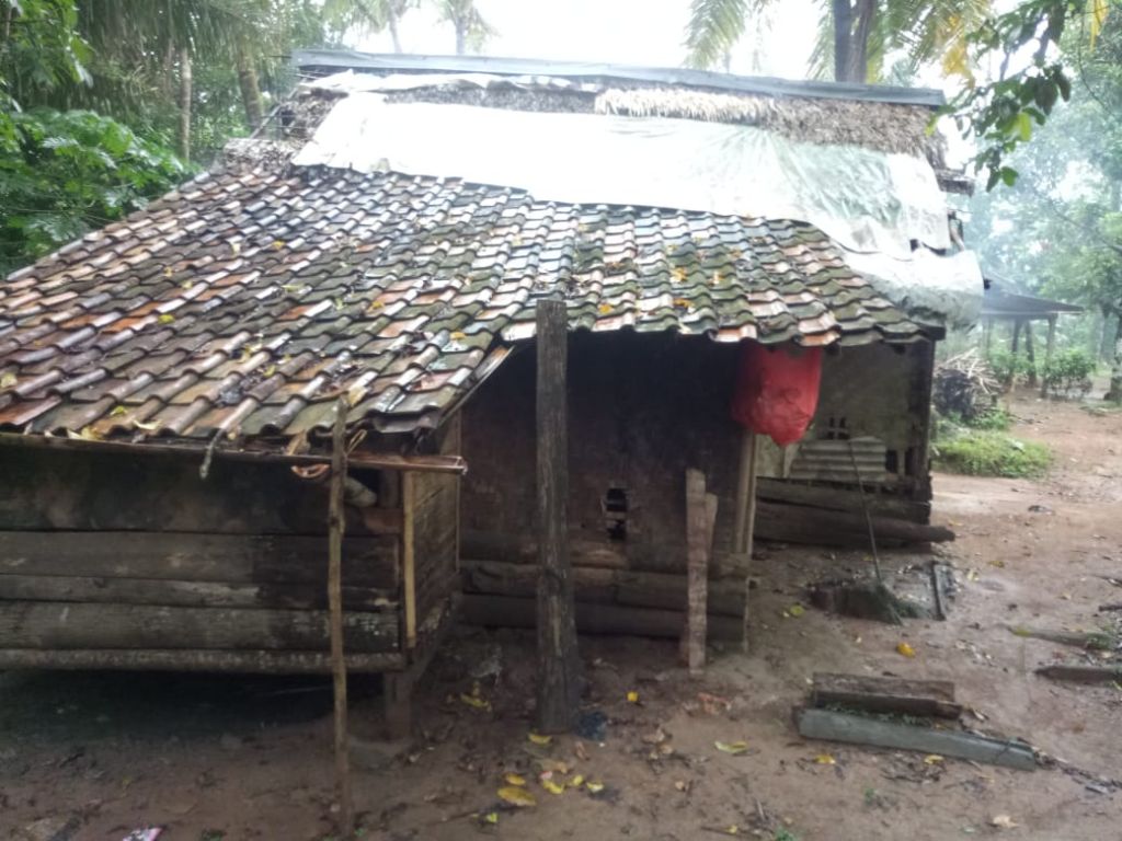 Keluarga ini tinggal di atas sepetak tanah berukuran 4x7 meter dengan bangunan rumah yang tidak layak huni. Beralaskan tanah, berdinding bilik rapuh dan lapuk, juga banyak lubang. Tak mampu menahan dinginnya angin malam.