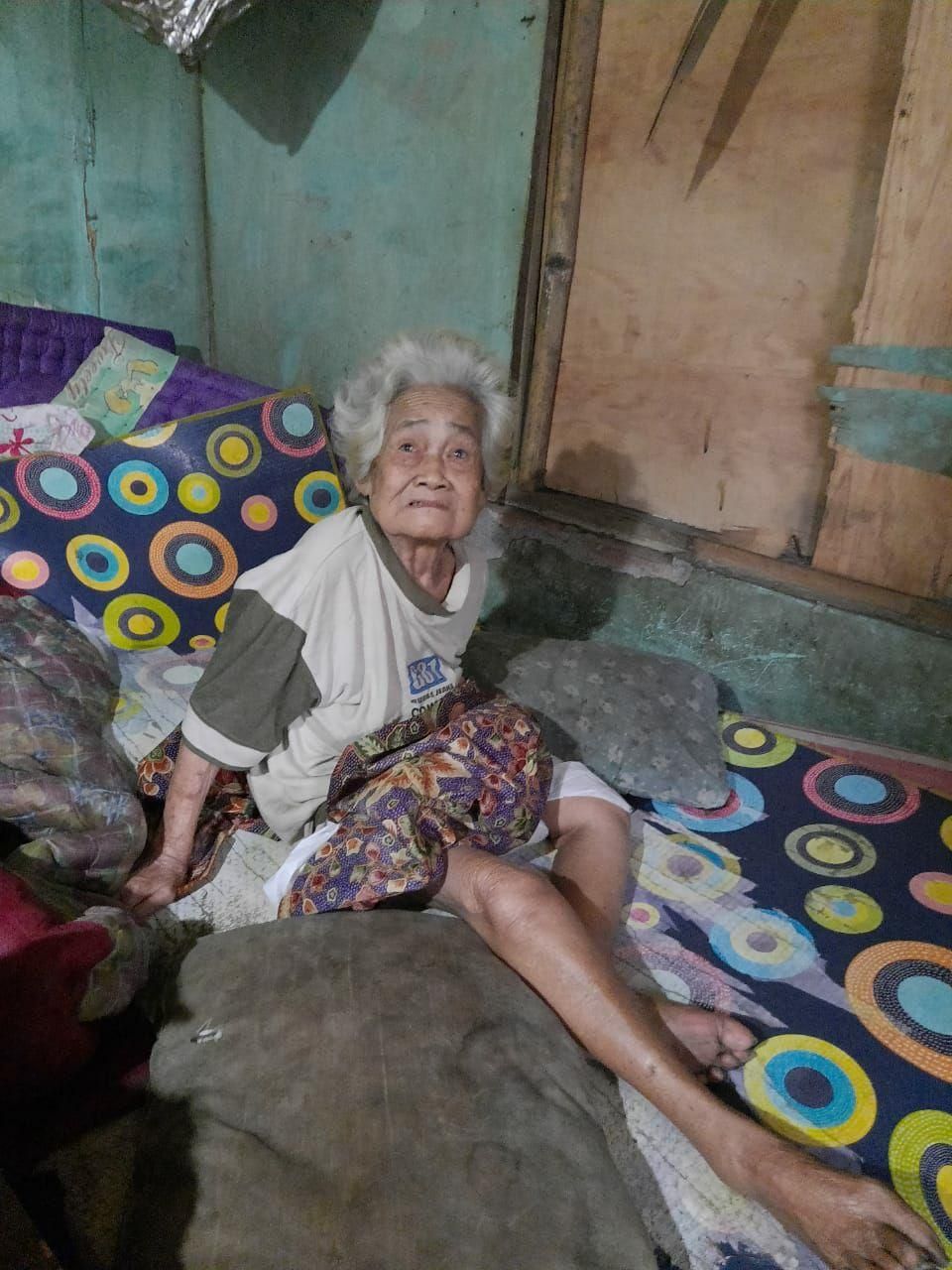 Kondisi Nenek Amah yang bisa terbaring di tempat tidur karena pernah jatuh dan kaki kirinya patah. Bicaranya juga sudah sedikit kurang nyambung meski bicaranya masih normal.