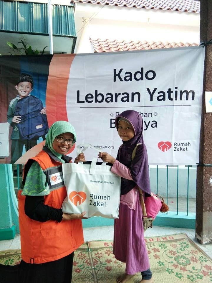"Alhamdulillah dapat tas dan alat tulis untuk sekolah baru nanti, yang sebelumya saya tidak pernah berharap dapat memakai tas baru. Alhamdulillah juga ada snack kue untuk lebaran nanti".