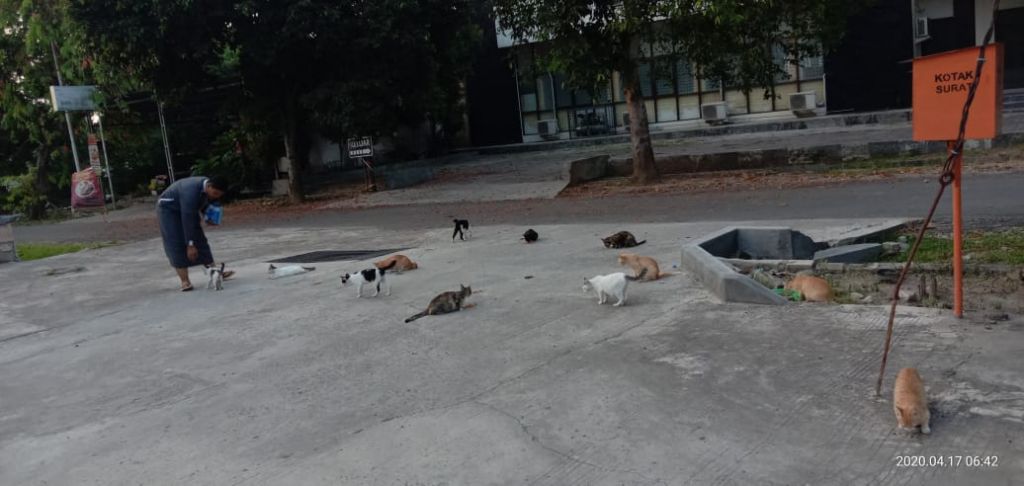 Sejak Unmul di Lockdown sementara, kucing-kucing liar di lingkungan masjid kehilangan sumber makanan. Biasanya, banyak mas-mas dan mba-mba baik hati yang singgah memberi mereka sedikit santapan. Namun selama kampus di Lockdown, gak ada lagi yang memerhatikan nasib kucing-kucing ini. Kasihan, di tempat sampah pun belum tentu ada makanan :’(