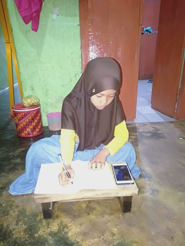 Rupanya ponsel yang dipakai bukanlah miliknya, melainkan meminjam dari tetangga. Tak punya cukup biaya buat membeli ponsel ataupun kuota seperti yang dialami oleh Nabila anak juara Rumah Zakat wilayah binaan Taktakan.